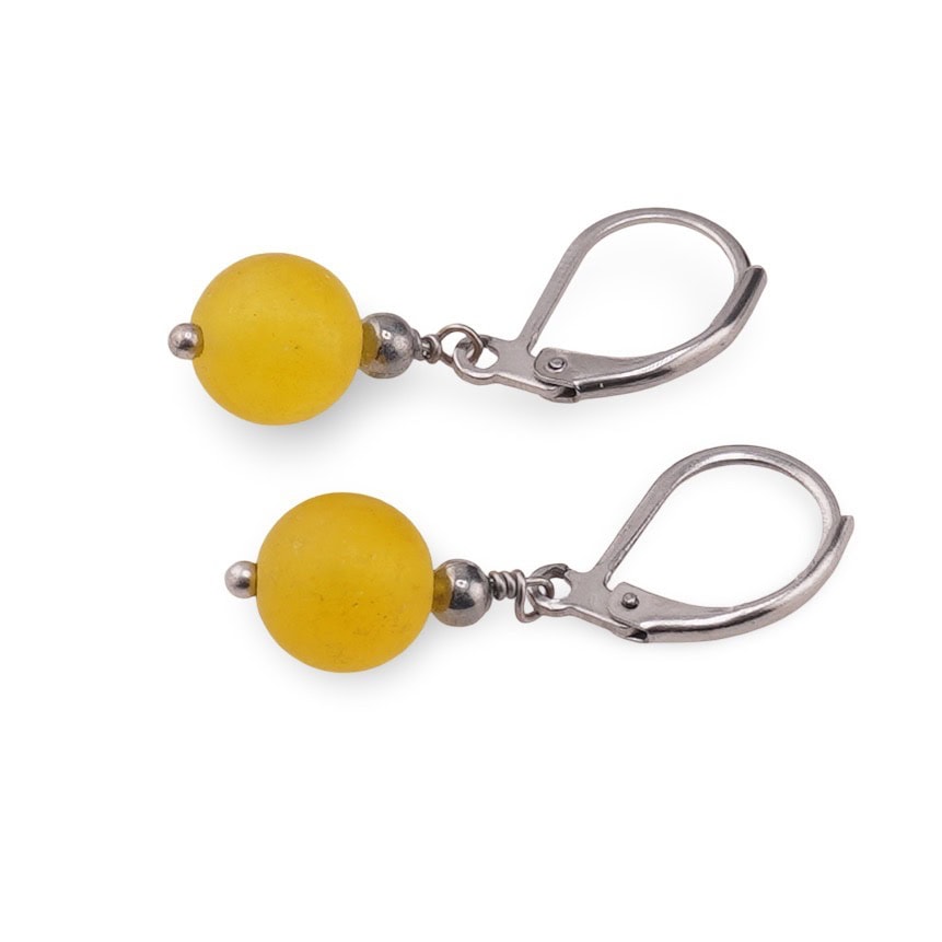 Cercei cu agatatoare Agat galben mat sfera 8mm
