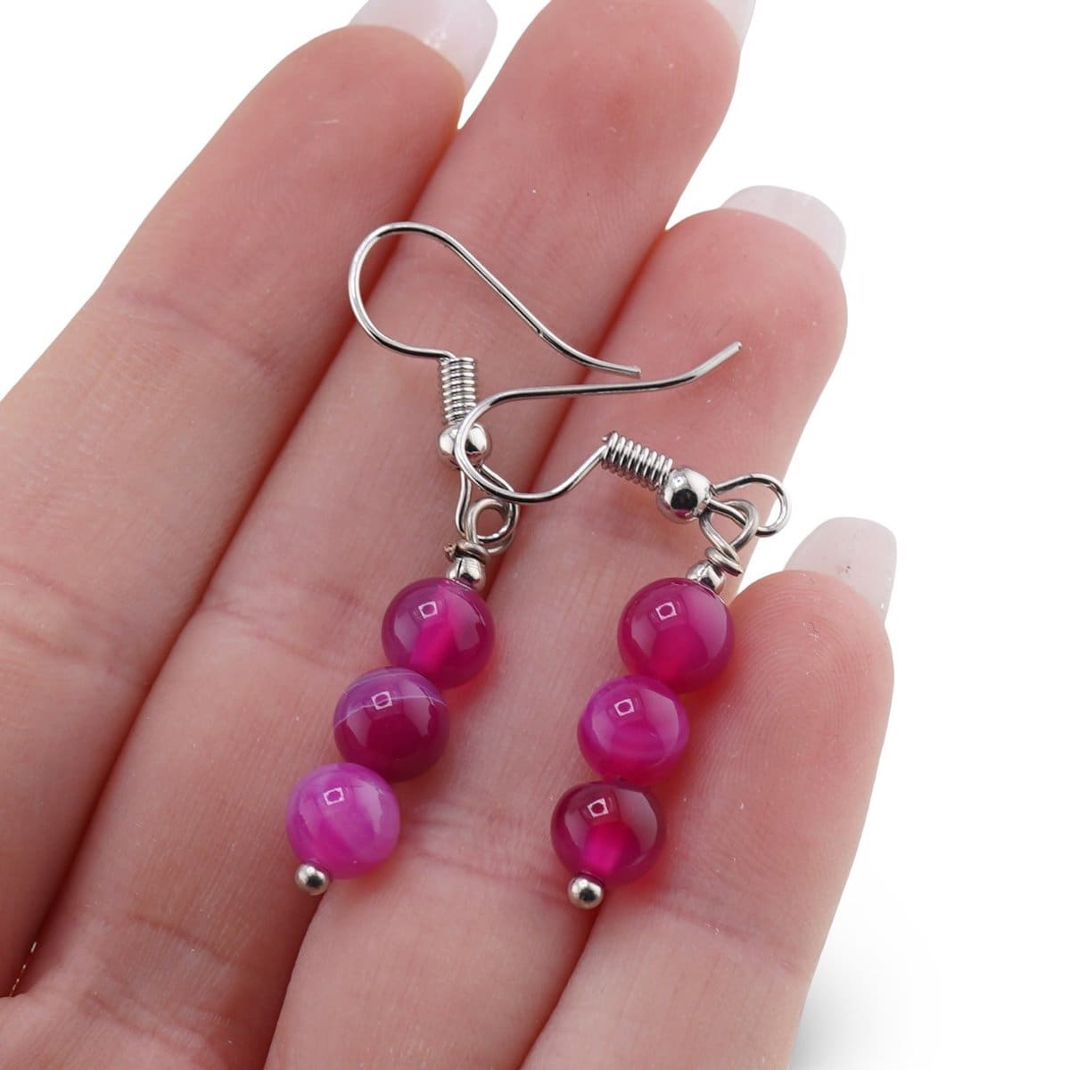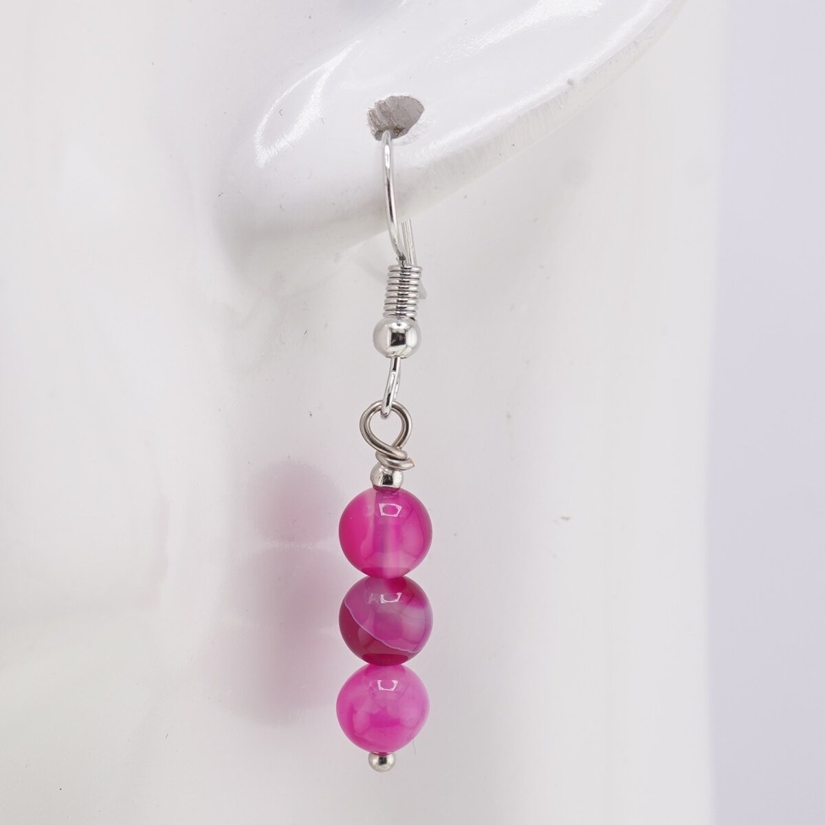 Pietrele sunt din agat natural, cu nuanța roz obținută prin vopsire, astfel încât să te bucuri de culoare uniformă și plăcută. Fiecare sferă de 6mm are un aspect neted, care prinde frumos lumina și se așază discret la ureche. Sistemul de prindere cu agățatoare oferă lejeritate și comoditate, astfel încât să îi poți pune și da jos rapid, fără efort.