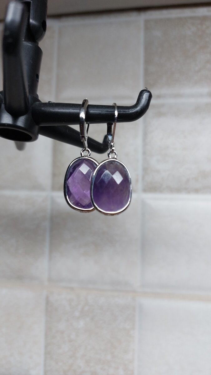 Cercei cu agatatoare Ametist oval cu montura argintie, 20mm.