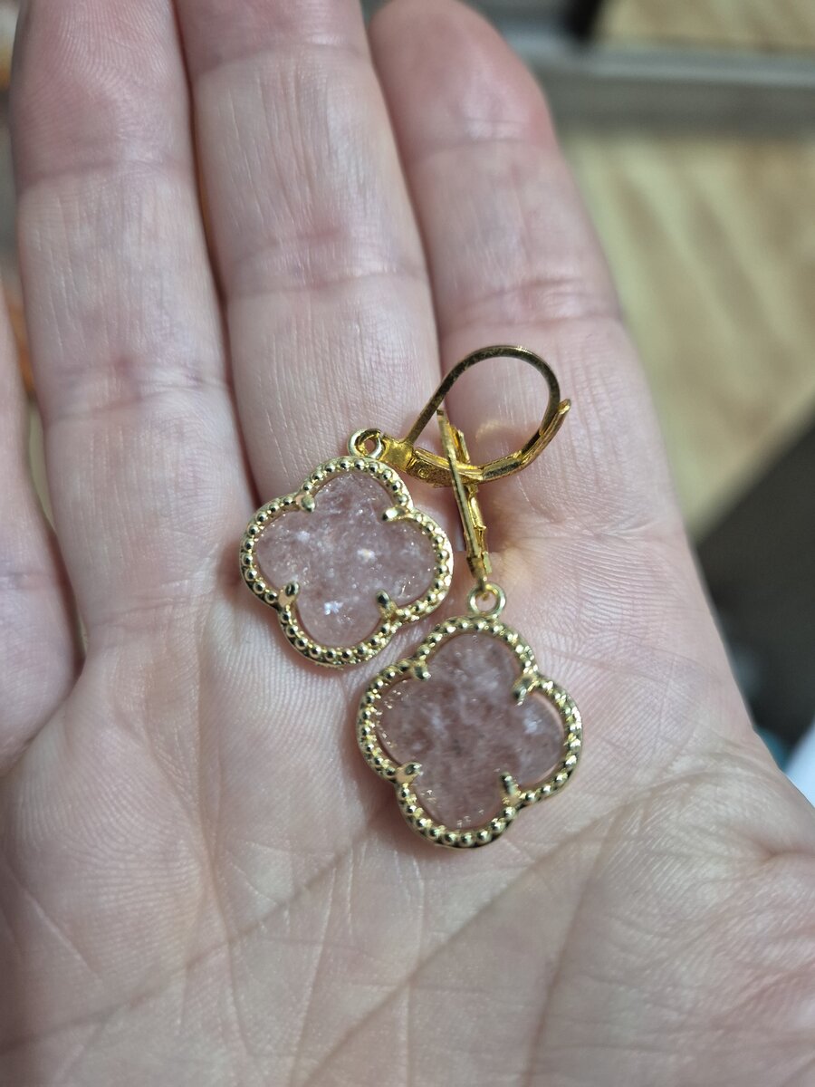 Cercei cu agatatoare Aventurin rosu trifoi cu montura aurie, 18mm.
