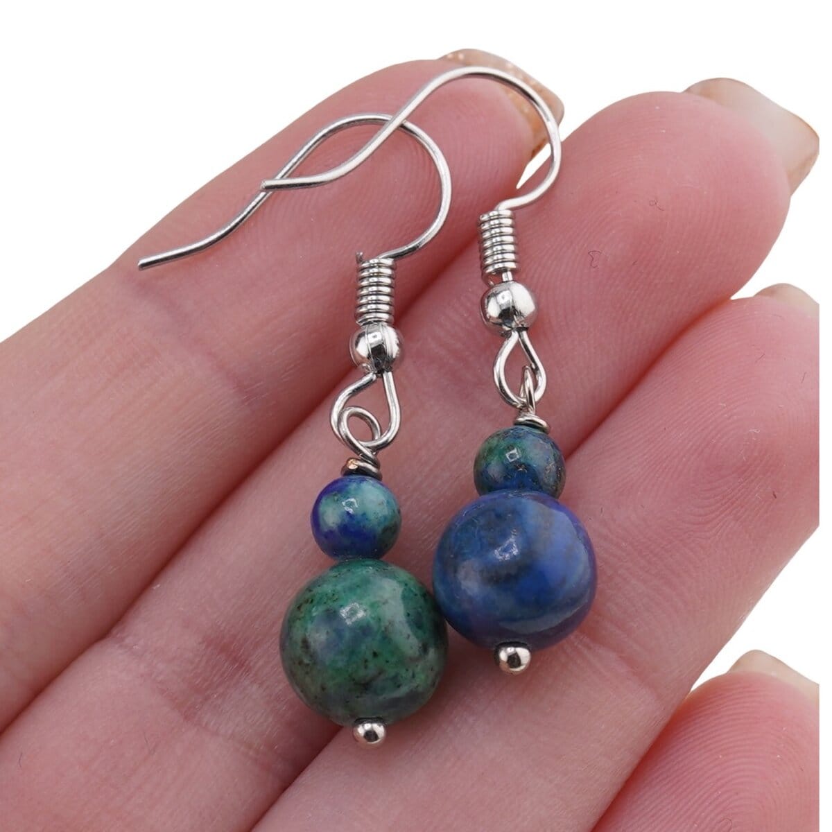 Cercei cu agățatoare Azurit sfere, 4–8 mm – culoarea cerului la urechile tale