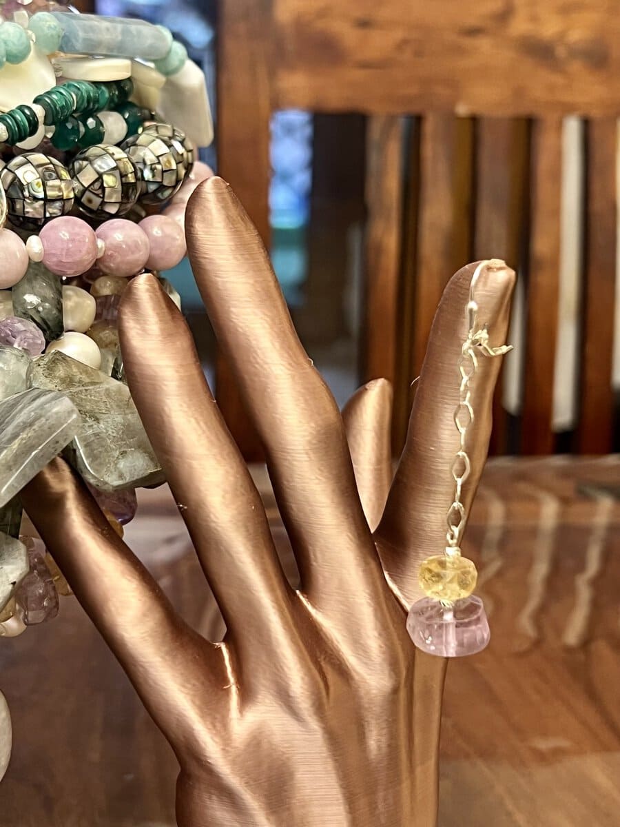 Montura din argint 925 pune în valoare discurile fațetate, ajutând lumina să se reflecte delicat în suprafețele cristalelor. Datorită modului în care sunt tăiate, discurile surprind nuanțele de galben și mov din unghiuri diferite, oferind o strălucire discretă, ușor de integrat în stilul tău de zi cu zi. Duritatea cristalelor, situată în jurul valorii de 6–6,5 pe scara Mohs, le conferă o rezistență bună la utilizarea normală, astfel încât să te poți bucura de bijuterie o perioadă îndelungată.