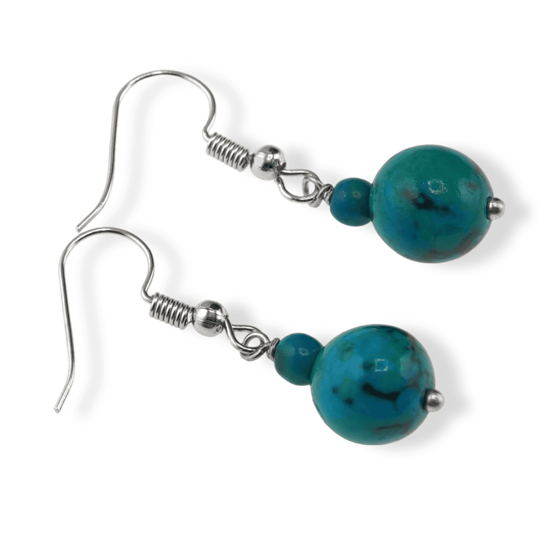 Cercei cu agatatoare Crisocola, sfere 10mm si 4mm.