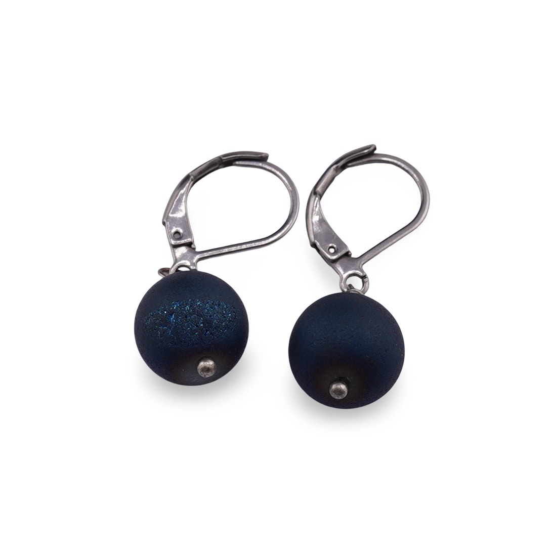 Răsfață-ți stilul cu o notă de culoare și echilibru interior. Acești cercei cu agățatoare, realizați din cuart electroplacat într-o nuanță profundă de albastru, aduc un plus de rafinament oricărei ținute. Sfera de 10 mm din cristal tratat prinde lumina discret, iar prinderea lejeră îi face ușor de purtat, fie că alegi o ținută casual sau una elegantă.