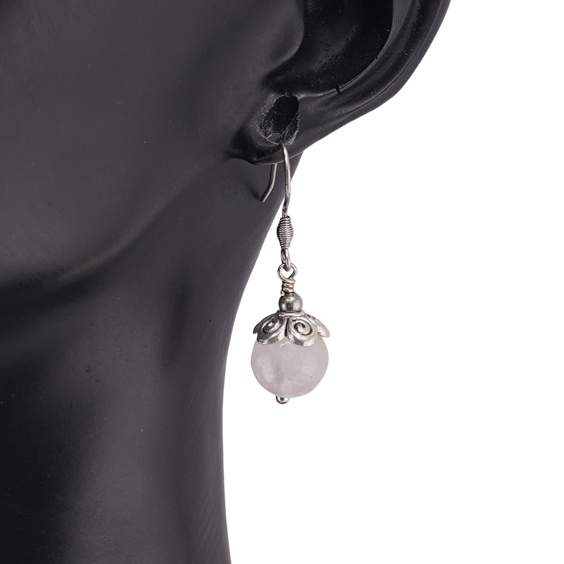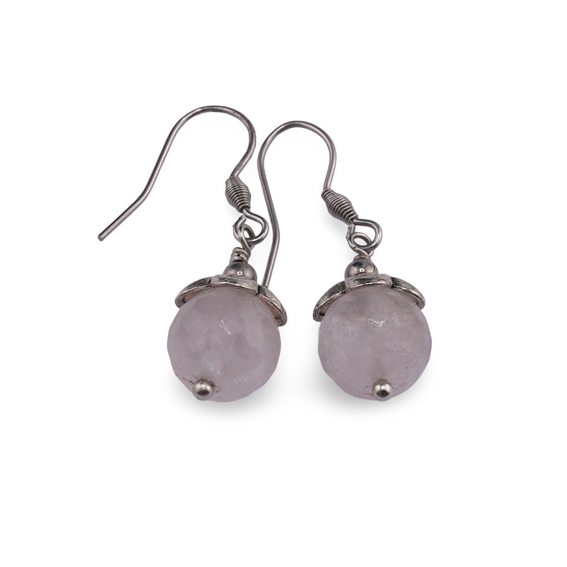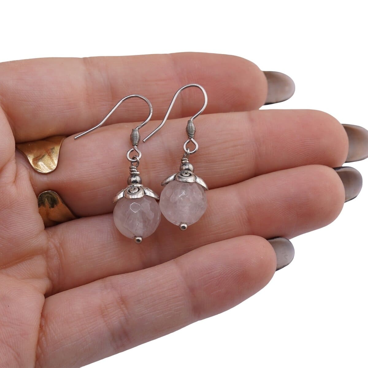 Cercei cu agatatoare Cuart roz sfera fatetata 10mm si element floral