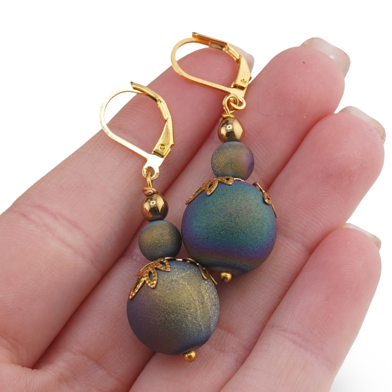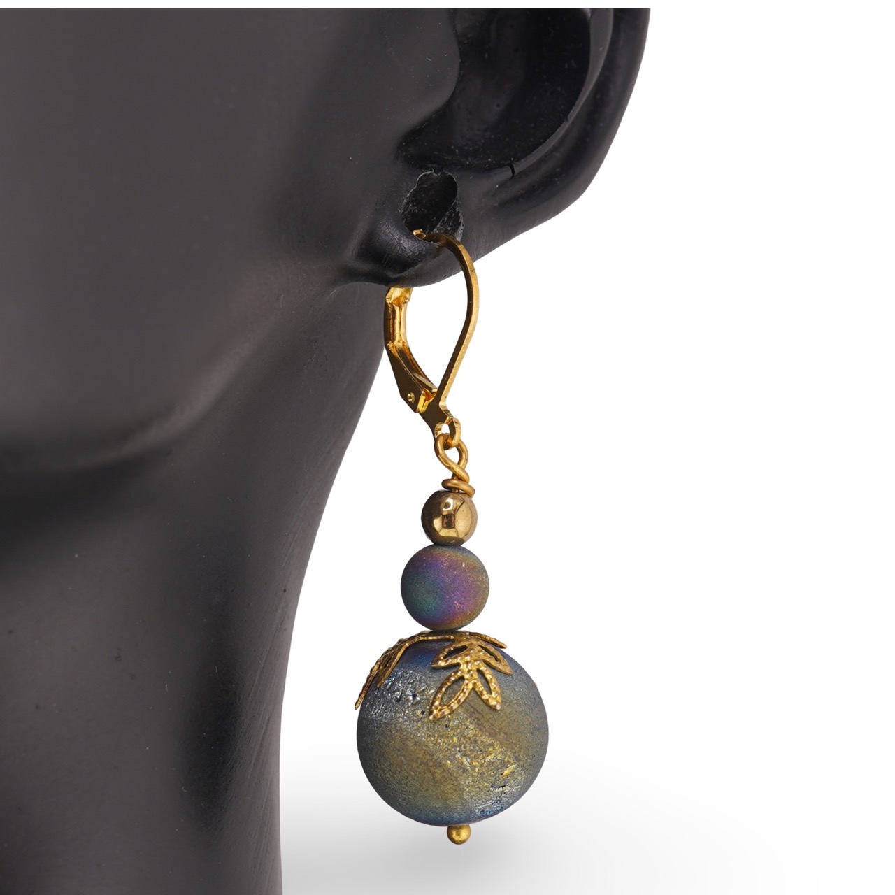 Lasă Cerceii cu agatatoare Cuart Titan Aura sfere 6-15mm cu flori aurii să completeze felul în care te exprimi prin accesorii și alege-i atunci când vrei să adaugi un plus de strălucire naturală și armonie în look-ul tău de zi cu zi.