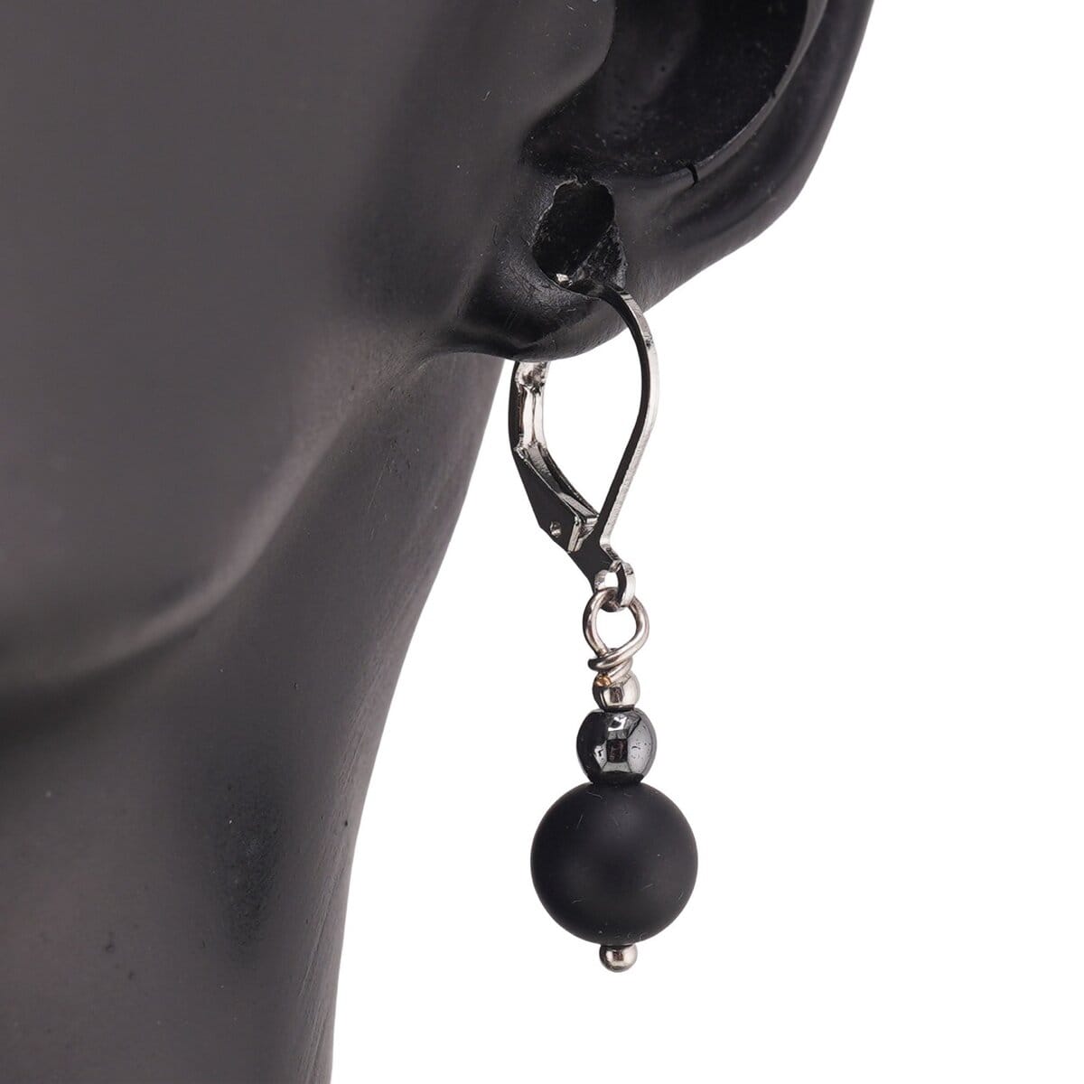 Cercei cu agatatoare Hematit si Onix negru mat sfere, 4-8mm