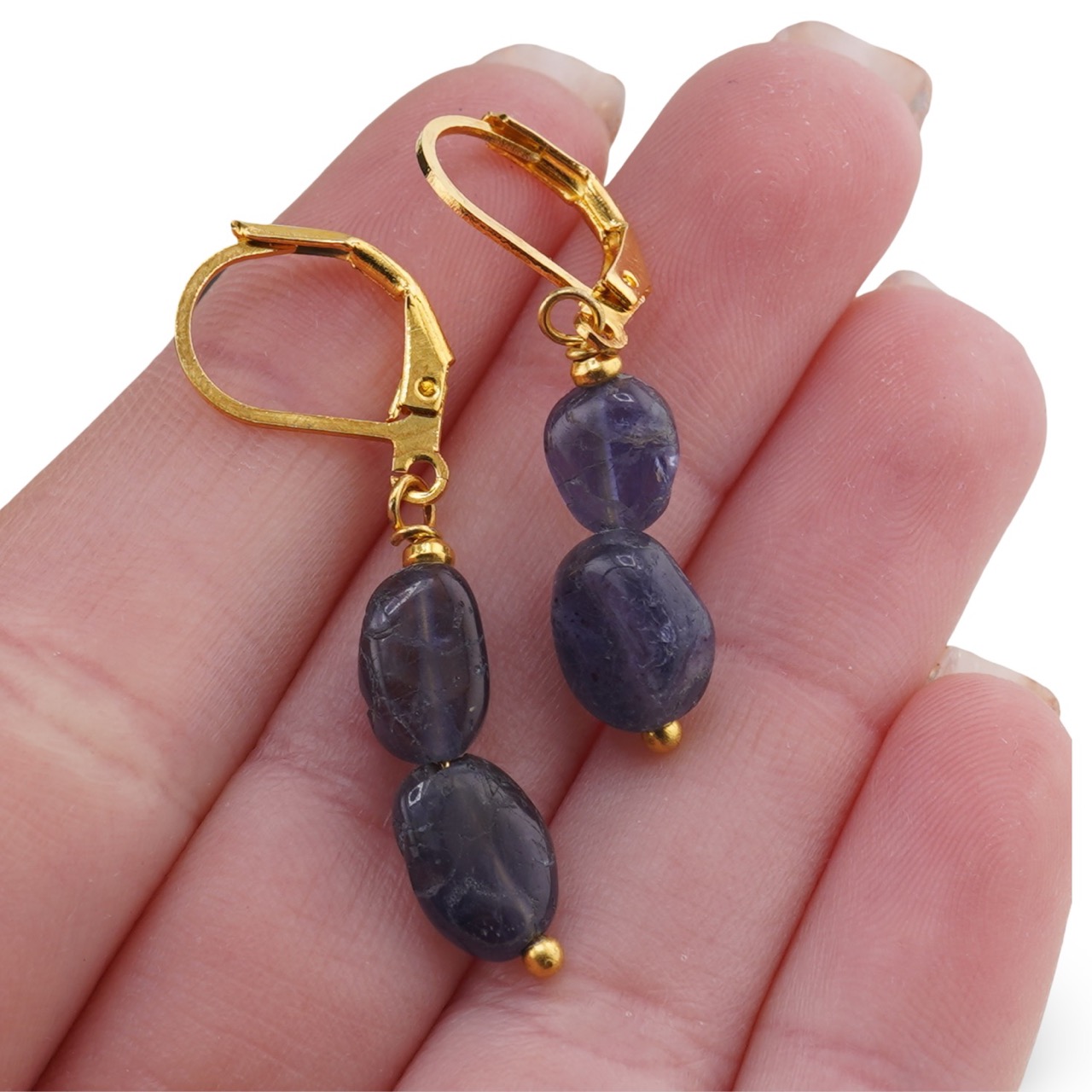 Cerceii cu agățatoare din Iolith neuniform, cu cristale naturale de 7–10 mm, sunt o alegere potrivită pentru tine dacă îți dorești o bijuterie discretă, cu o energie calmă și profundă. Nuanta lor de albastru, ușor misterioasă, amintește de cerul de seară și este asociată adesea cu introspecția, claritatea mentală și o intuiție mai bine conturată.