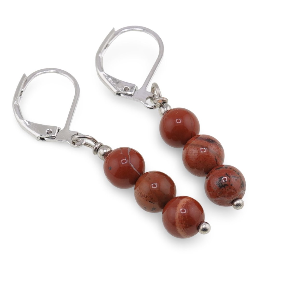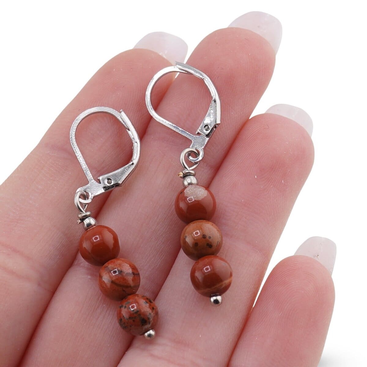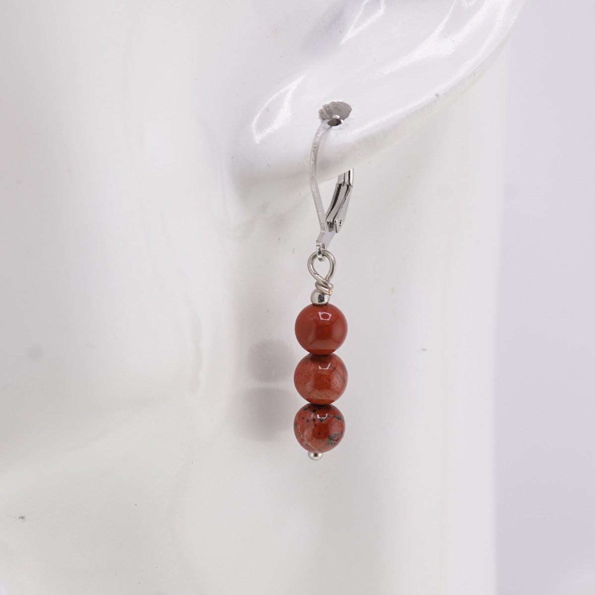 Cercei cu agatatoare Jasp rosu sfere, 6mm