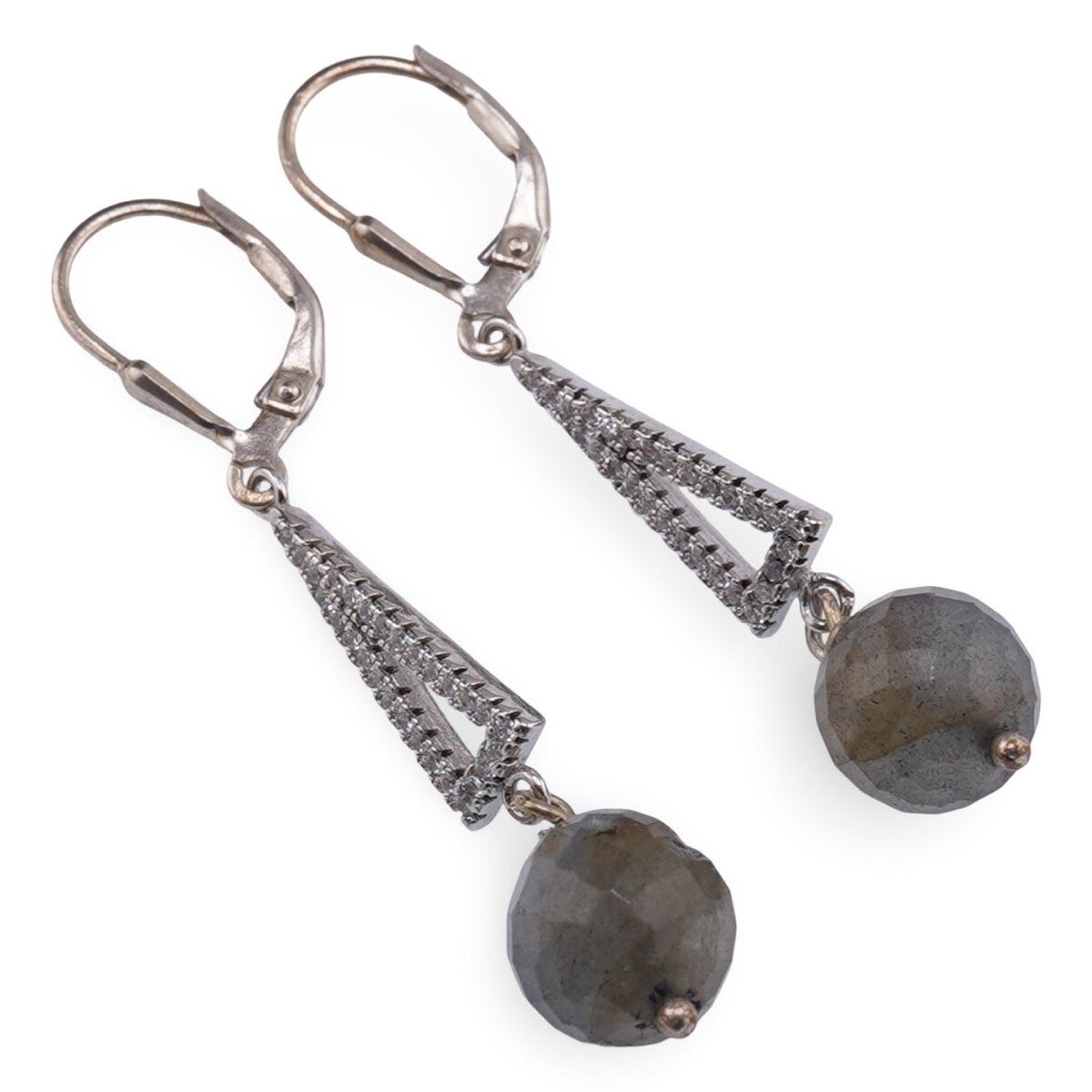 Cercei cu agatatoare Labradorit sfere fatetate 10mm cu Argint 925