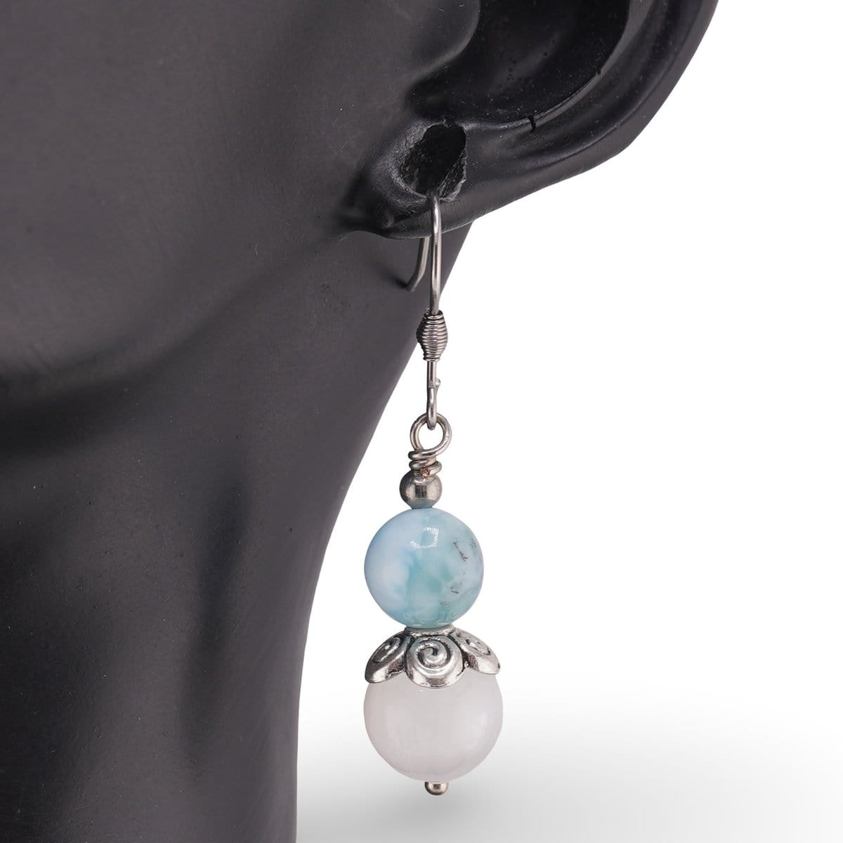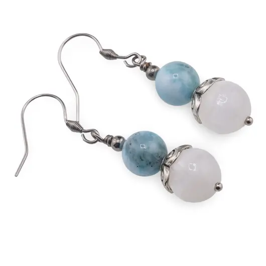 Cercei cu agatatoare Larimar si Selenit sfere cu element floare, 8-10mm