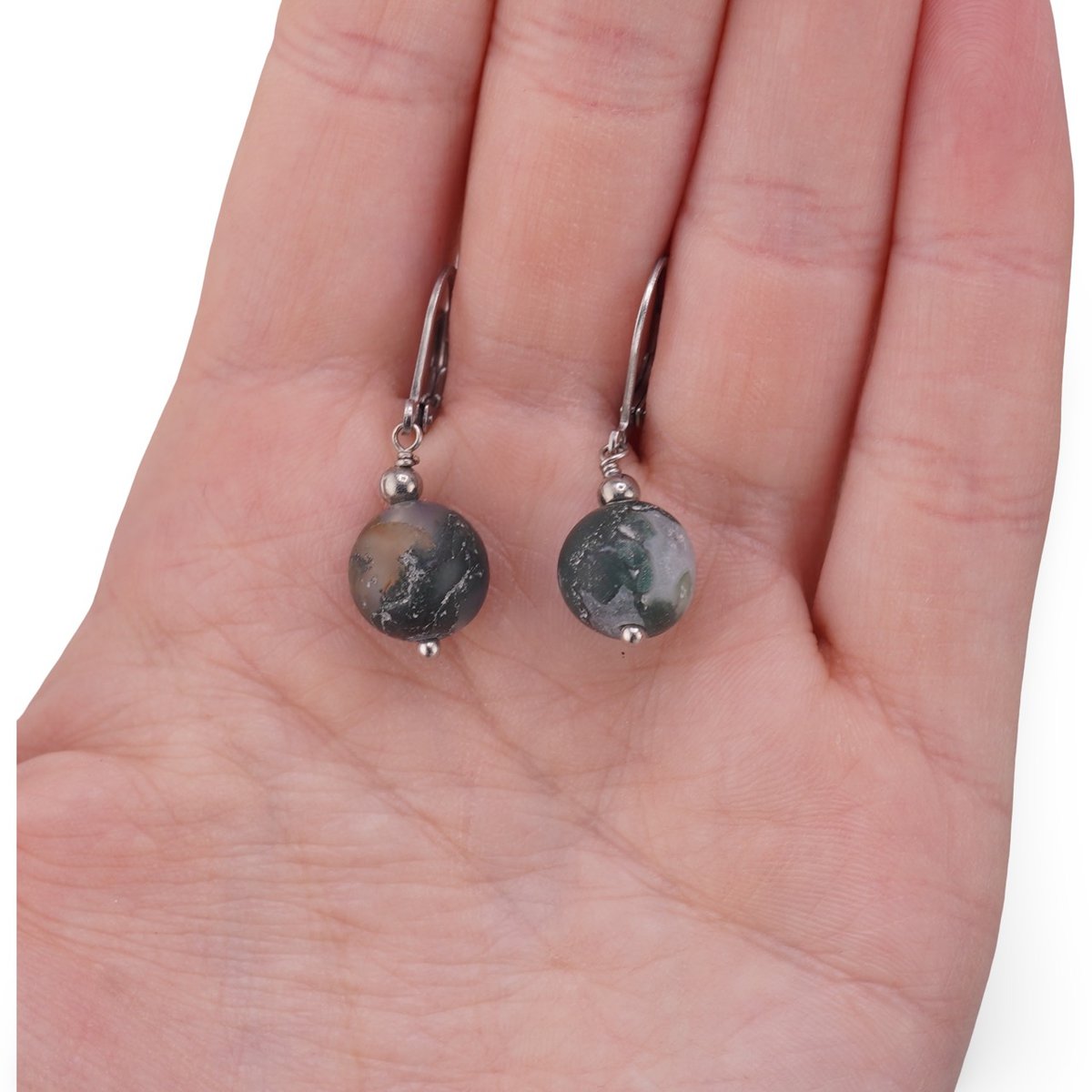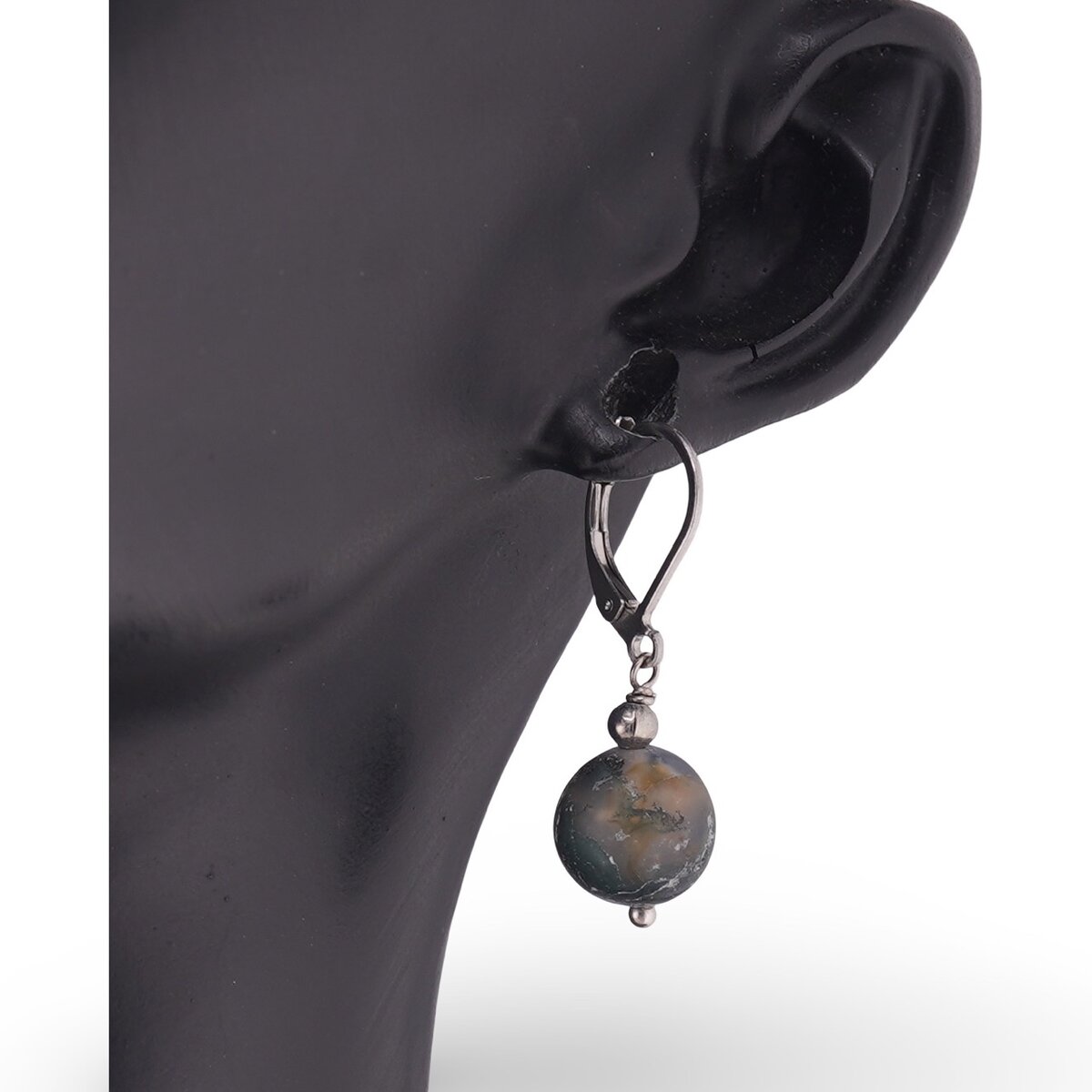 Cercei cu agatatoare Moss agat mat sfera 10mm
