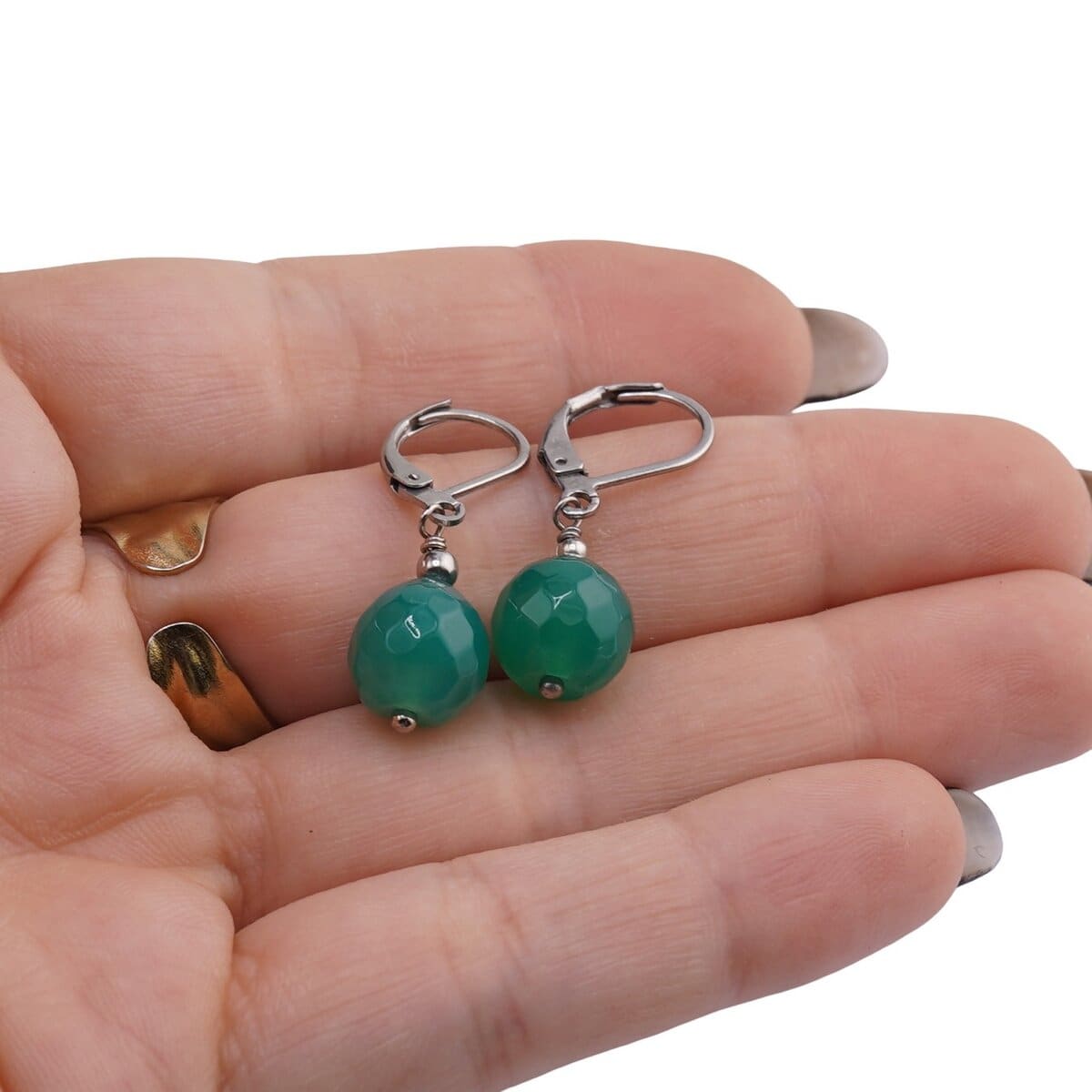Cercei cu agățatoare Onix verde sfere fațetate 10mm