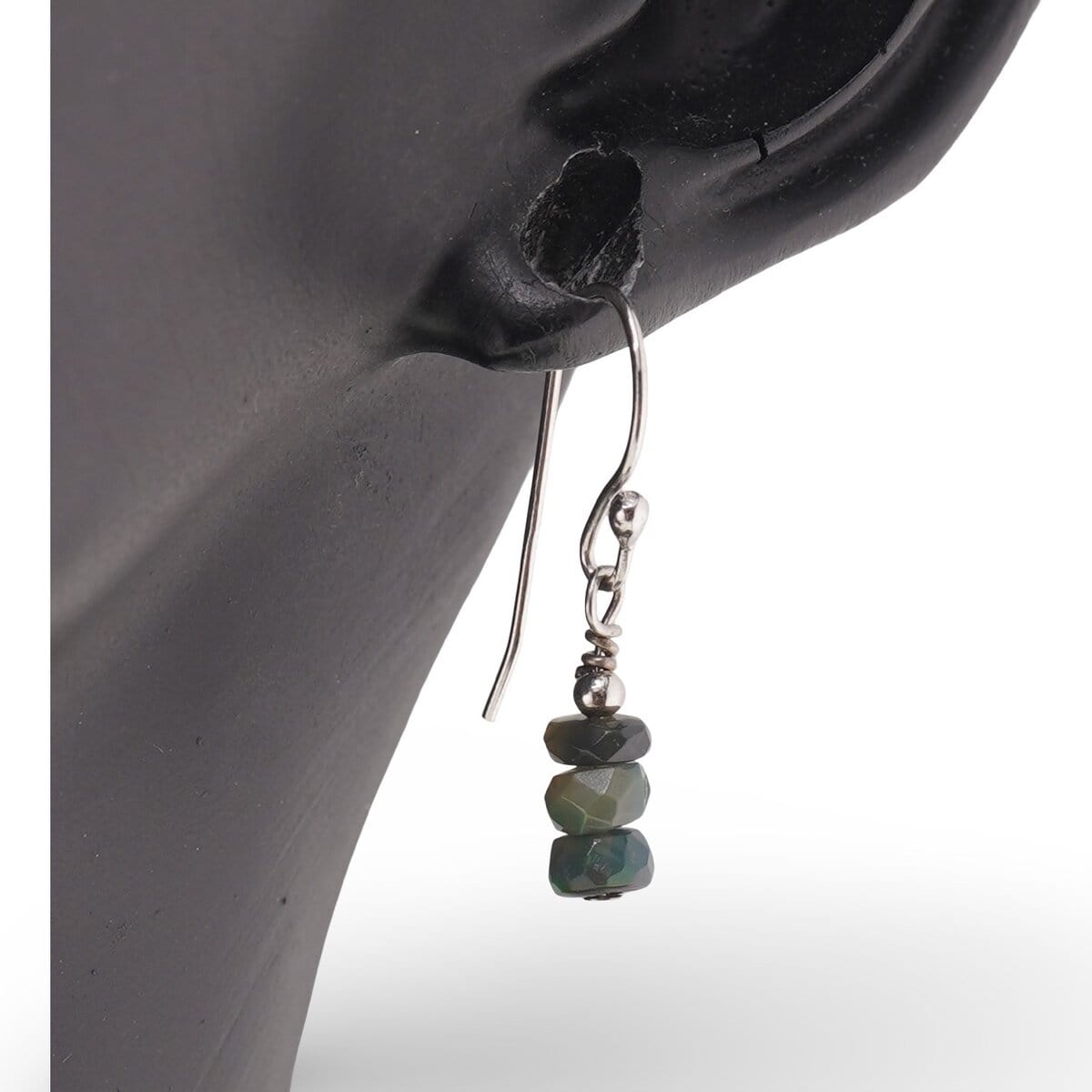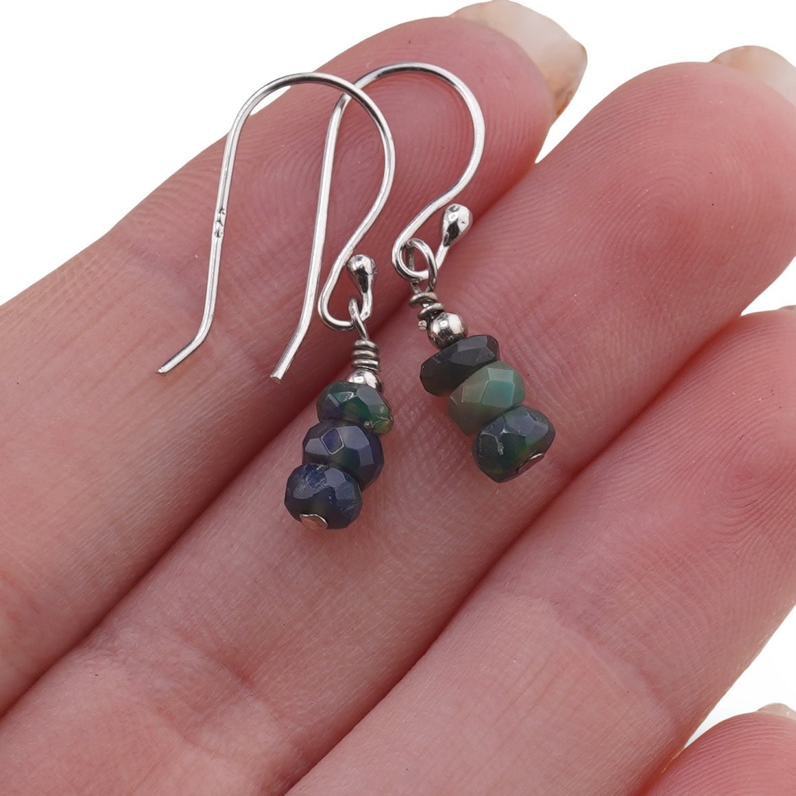 Cercei cu agatatoare Opal de foc negru discuri fatetate cu Argint 925, 4mm
