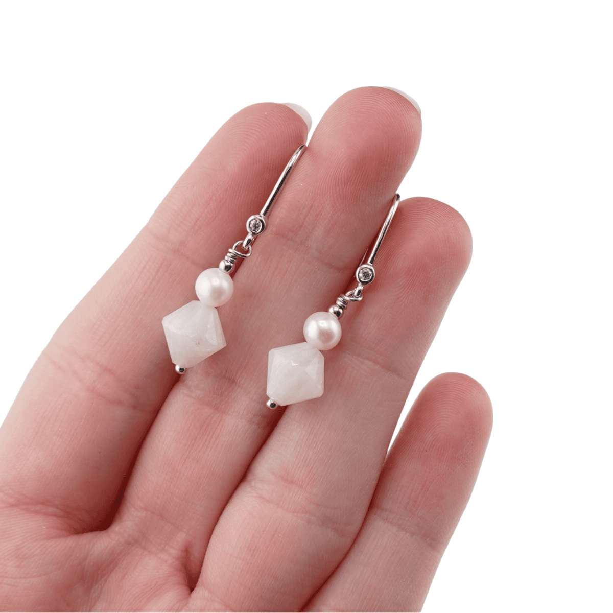 Cercei cu agatatoare Piatra Lunii romb si Perle cu Argint 925, 5-8mm.