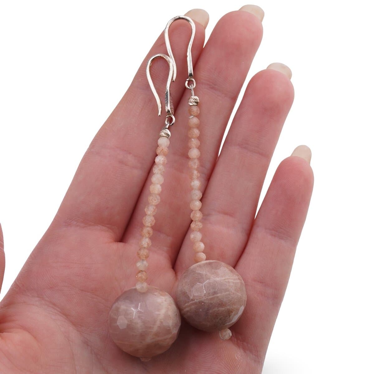 Cercei cu agatatoare Piatra Soarelui sfere fatetate 3–18mm cu Argint 925