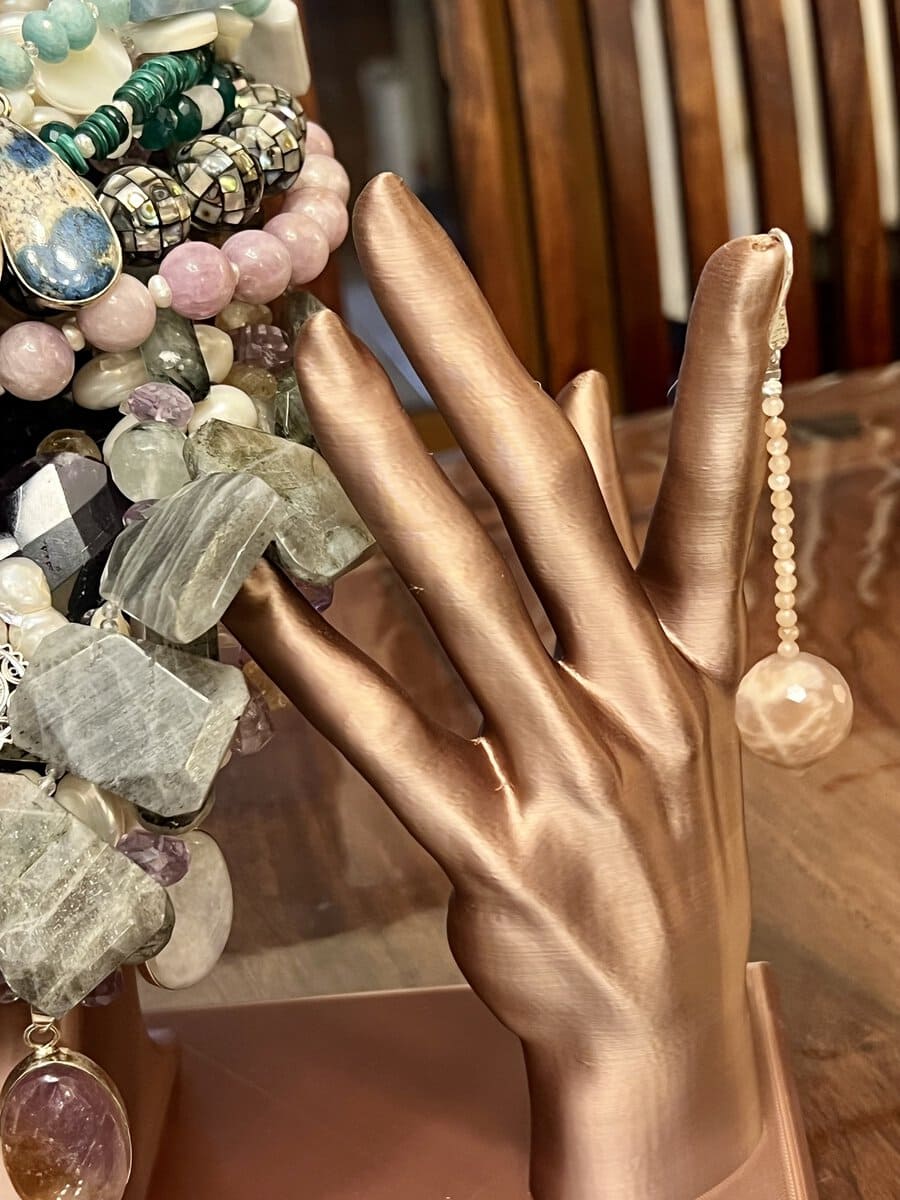 Argintul 925 completează frumos cristalele, oferind un suport rezistent și ușor de purtat zi de zi. Forma de sfere fațetate reflectă lumina în unghiuri diferite, astfel încât nuanțele de portocaliu par să prindă viață la fiecare mișcare, creând un joc discret de străluciri.