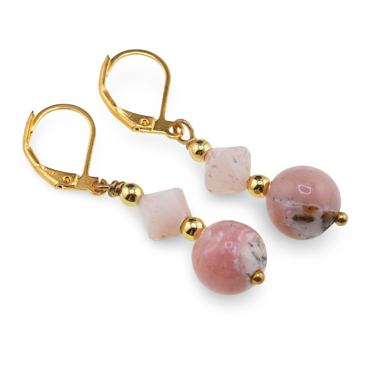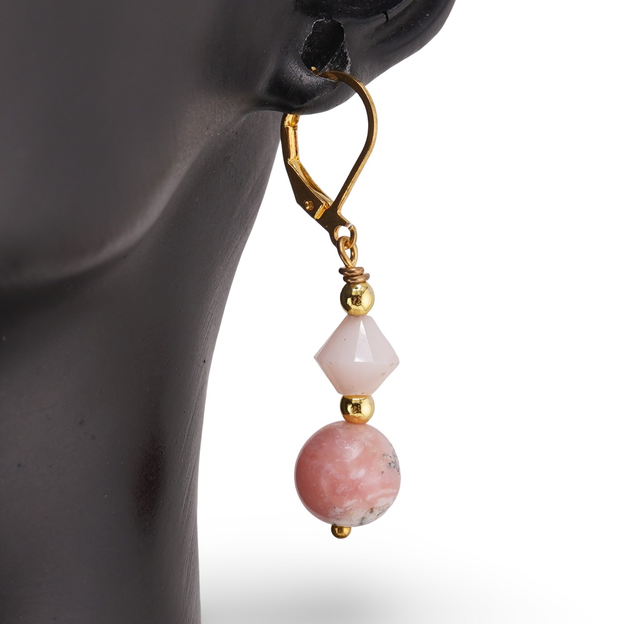 Cercei cu agatatoare Rodocrozit romb fatetat 8mm si sfera 10mm