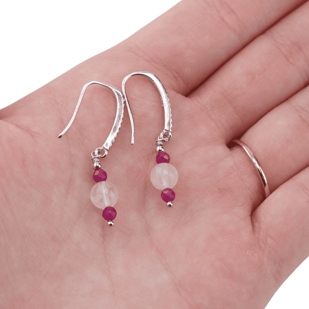 Cercei cu agatatoare Rubin si Piatra Lunii si baza de Argint 925 cu zirconii, 3-6mm.