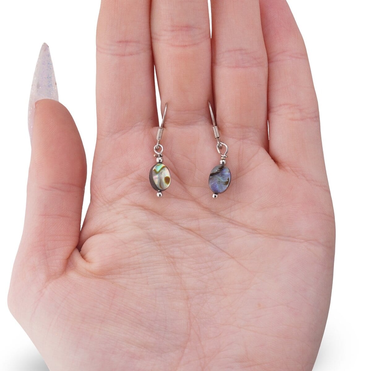 Cerceii cu agatatoare din scoică abalone ovală de 8 mm aduc aproape de tine energia blândă a mării, într-o bijuterie discretă și ușor de purtat zi de zi. Sideful natural, cunoscut și ca Mother of Pearl sau „piatra liniștii”, îți îmbracă lobul urechii într-un joc multicolor de reflexii, în care nuanțele de albastru, verde și roz se îmbină armonios într-o formă ovală elegantă.