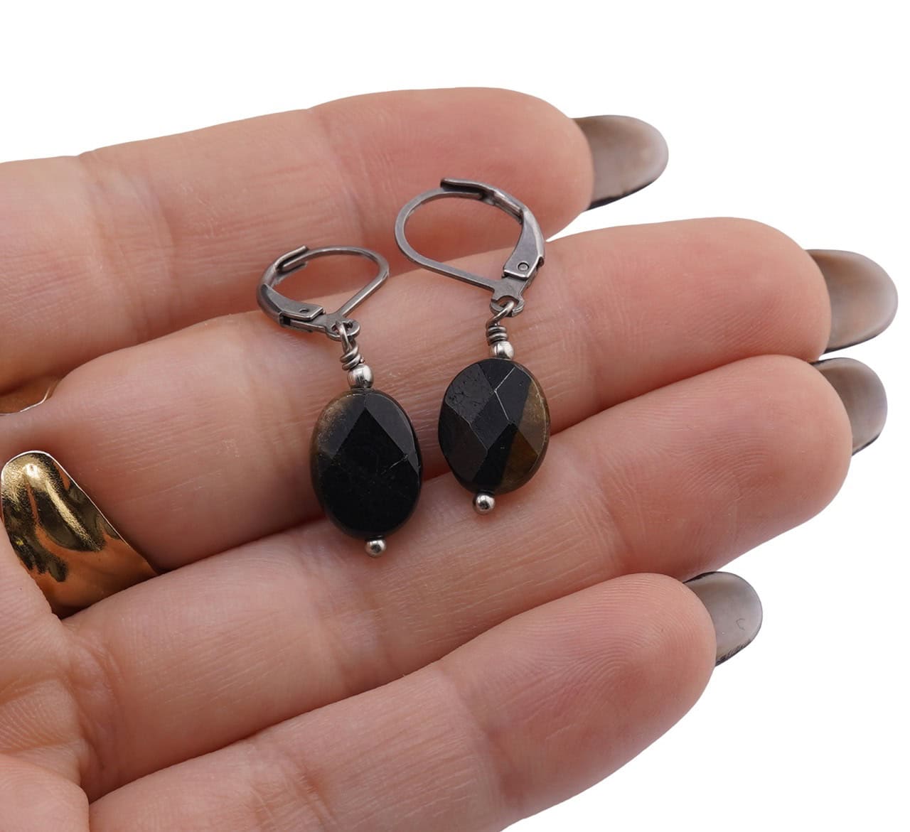 Pentru momentele în care vrei să te simți centrat și încrezător, acești cercei cu agățatoare din Turmalină îți aduc aproape o piatră iubită pentru protecție și echilibru. Cristalul natural, 100%, este tăiat oval și fațetat la 12 mm, captând discret lumina și păstrând culoarea intensă de negru specifică turmalinei. Designul lejer cu agățatoare îi face ușor de purtat zi de zi, fie că alegi o ținută casual sau una elegantă.