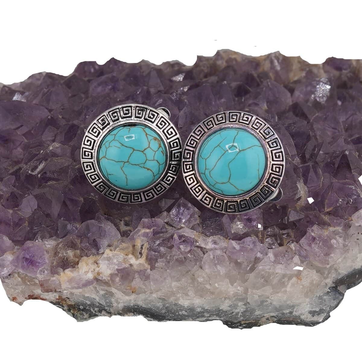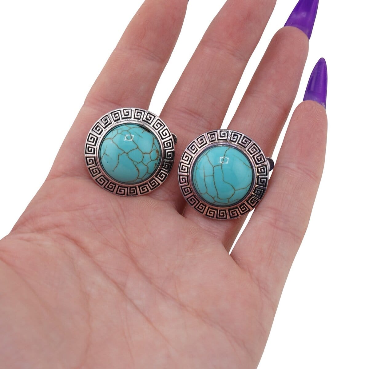 Cercei cu clipsuri Turcoaz in montura argintie - model rotund, 25mm