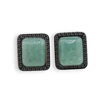 Cercei cu surub agat roz si montura din metal, patrati 20mm