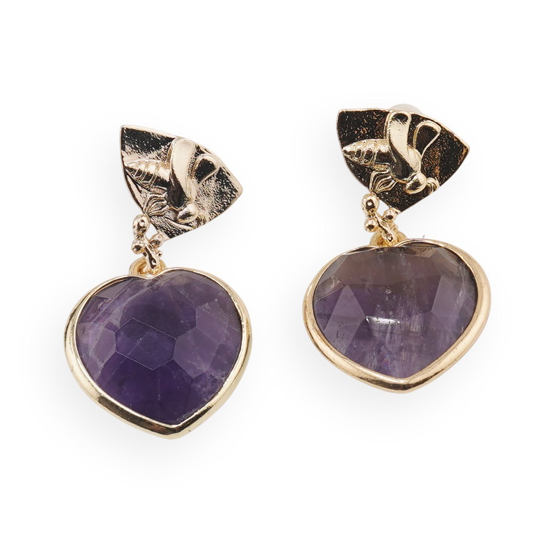 Cercei cu șurub Ametist inimă și element decorativ cu albină