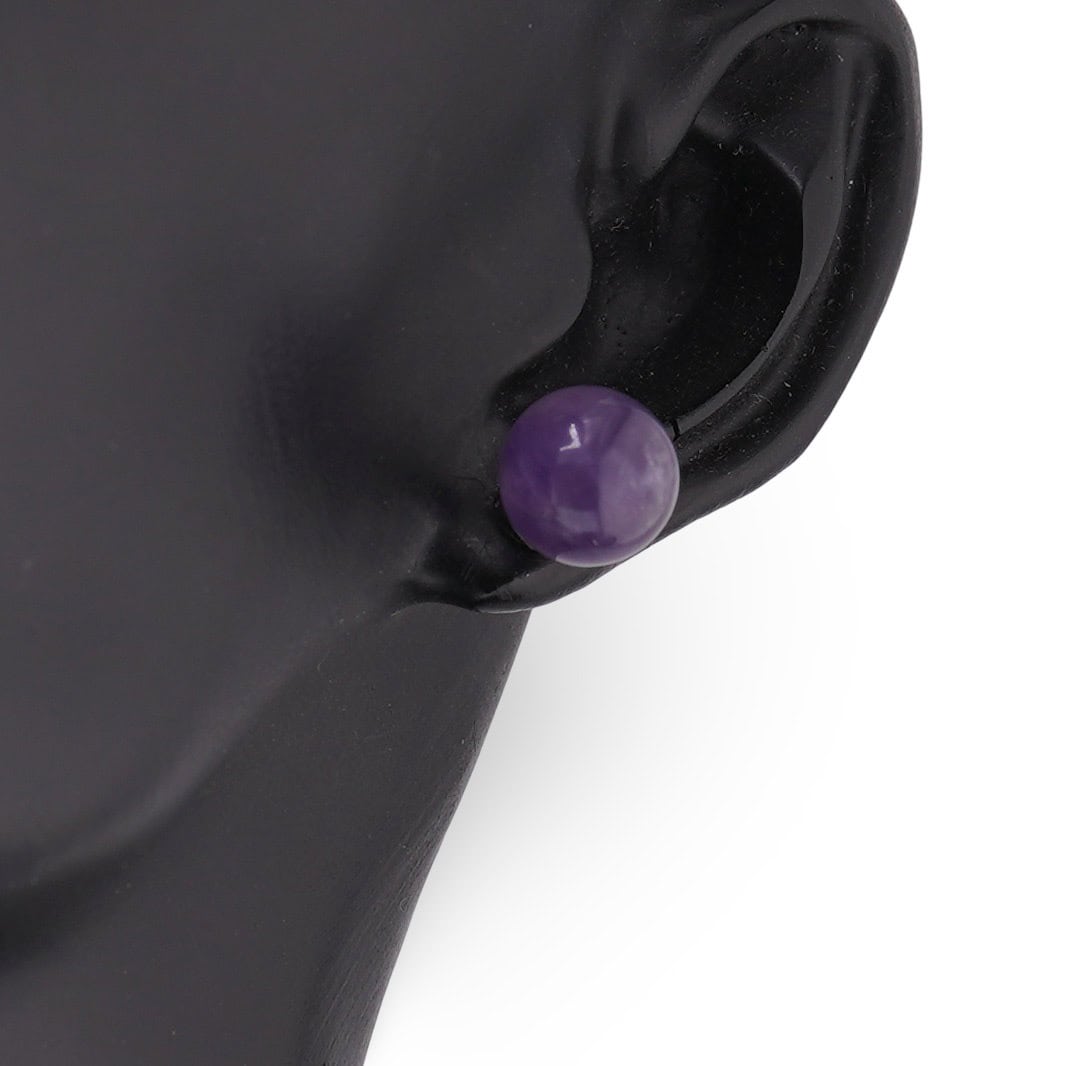 Cercei cu șurub din ametist, cu sfere de 8 mm