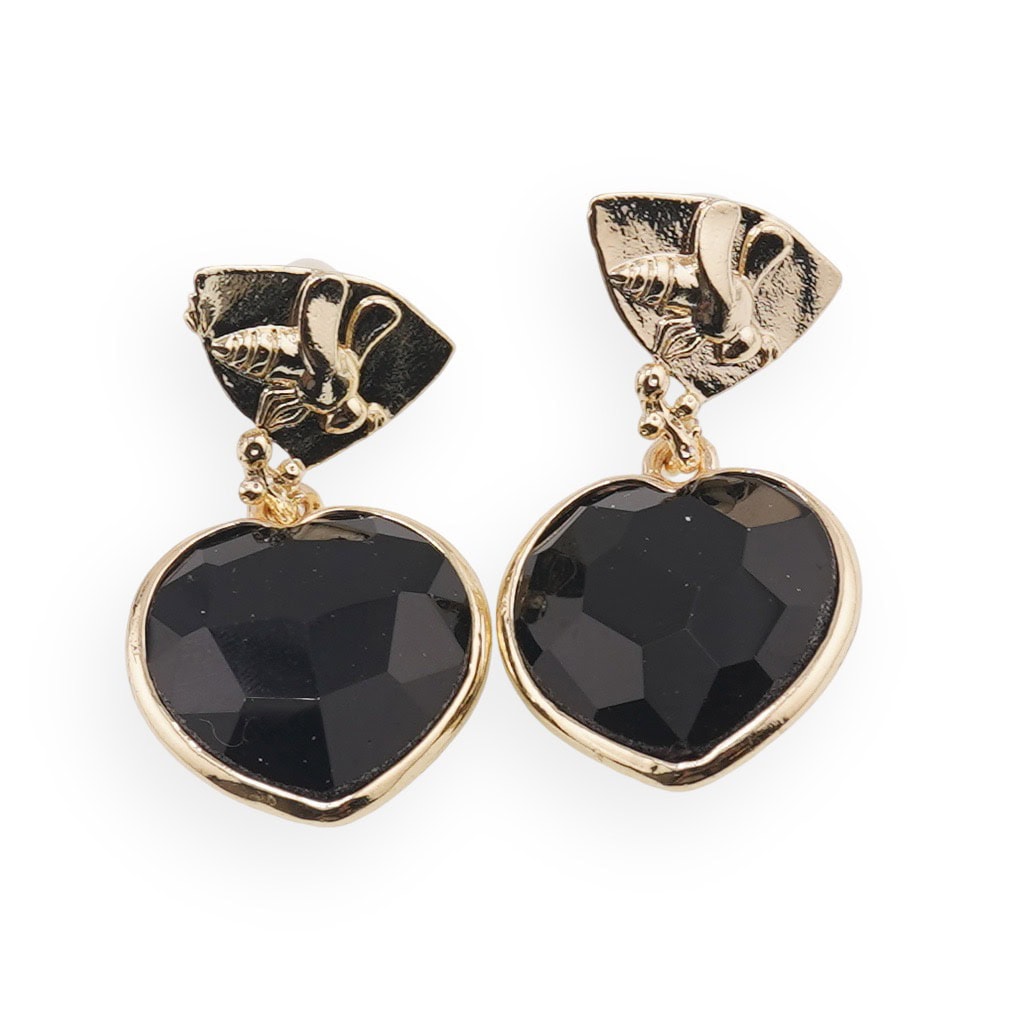 Cercei cu șurub Obsidian inimă și element decorativ cu albină