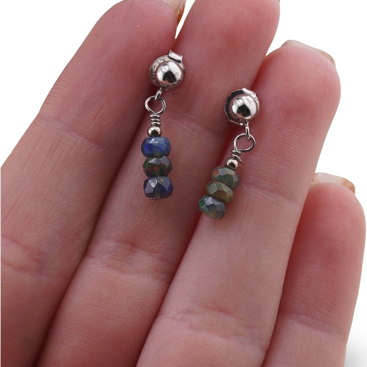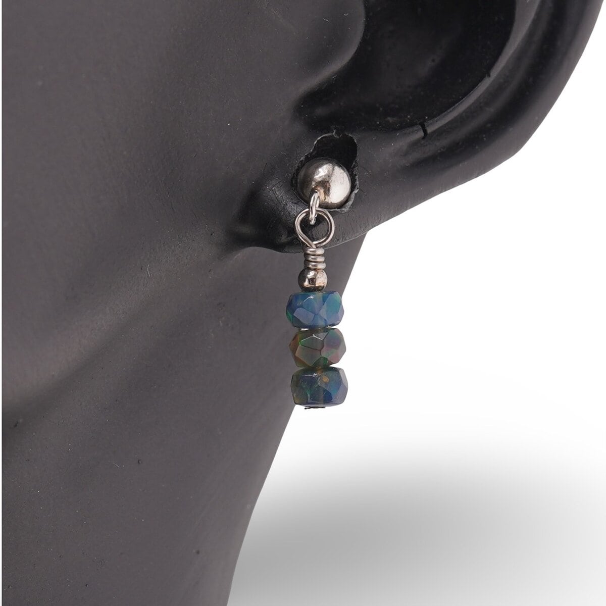 Cercei cu surub Opal de foc negru discuri fațetate cu Argint 925, 4mm