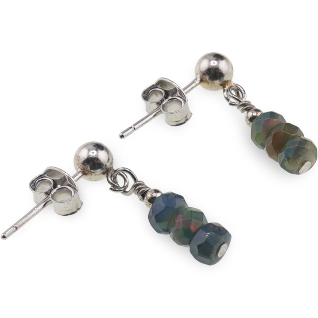 Cercei cu surub Opal de foc negru discuri fatetate cu Argint 925, 4mm