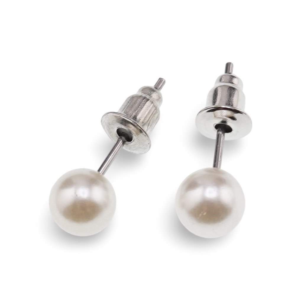 Cercei cu șurub Perle de Mallorca albe, 6 mm
