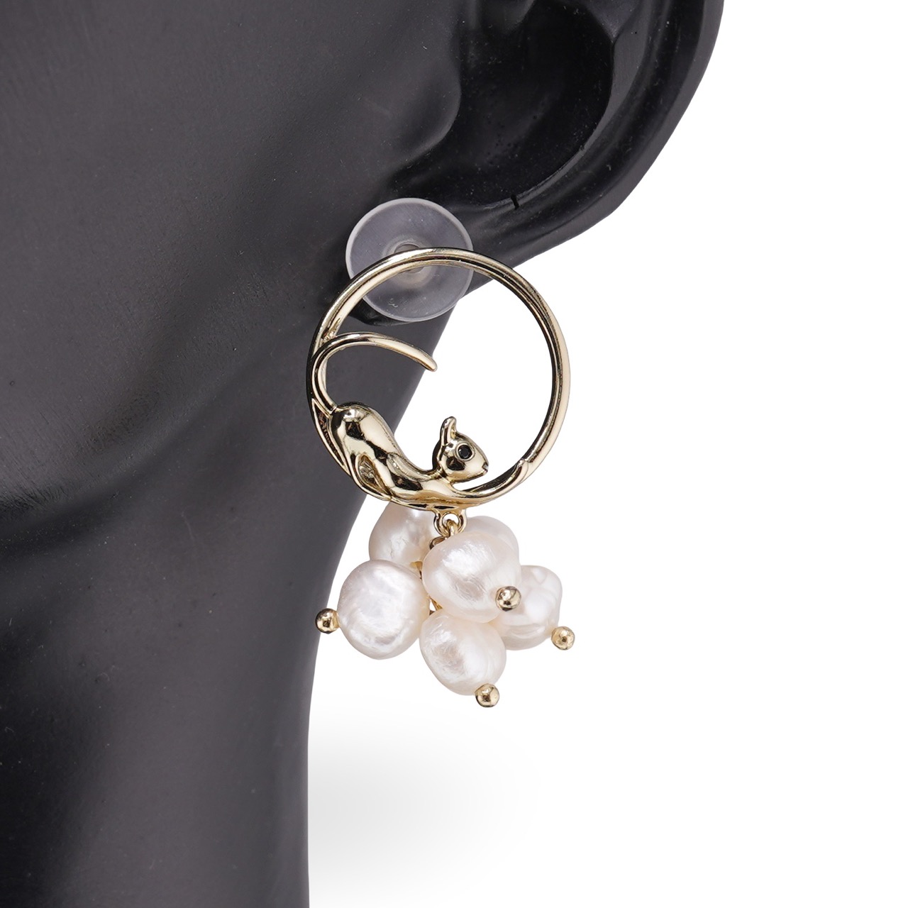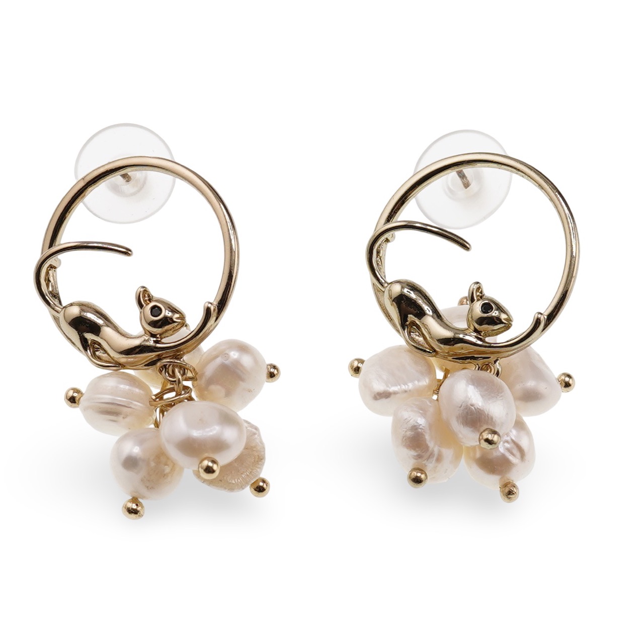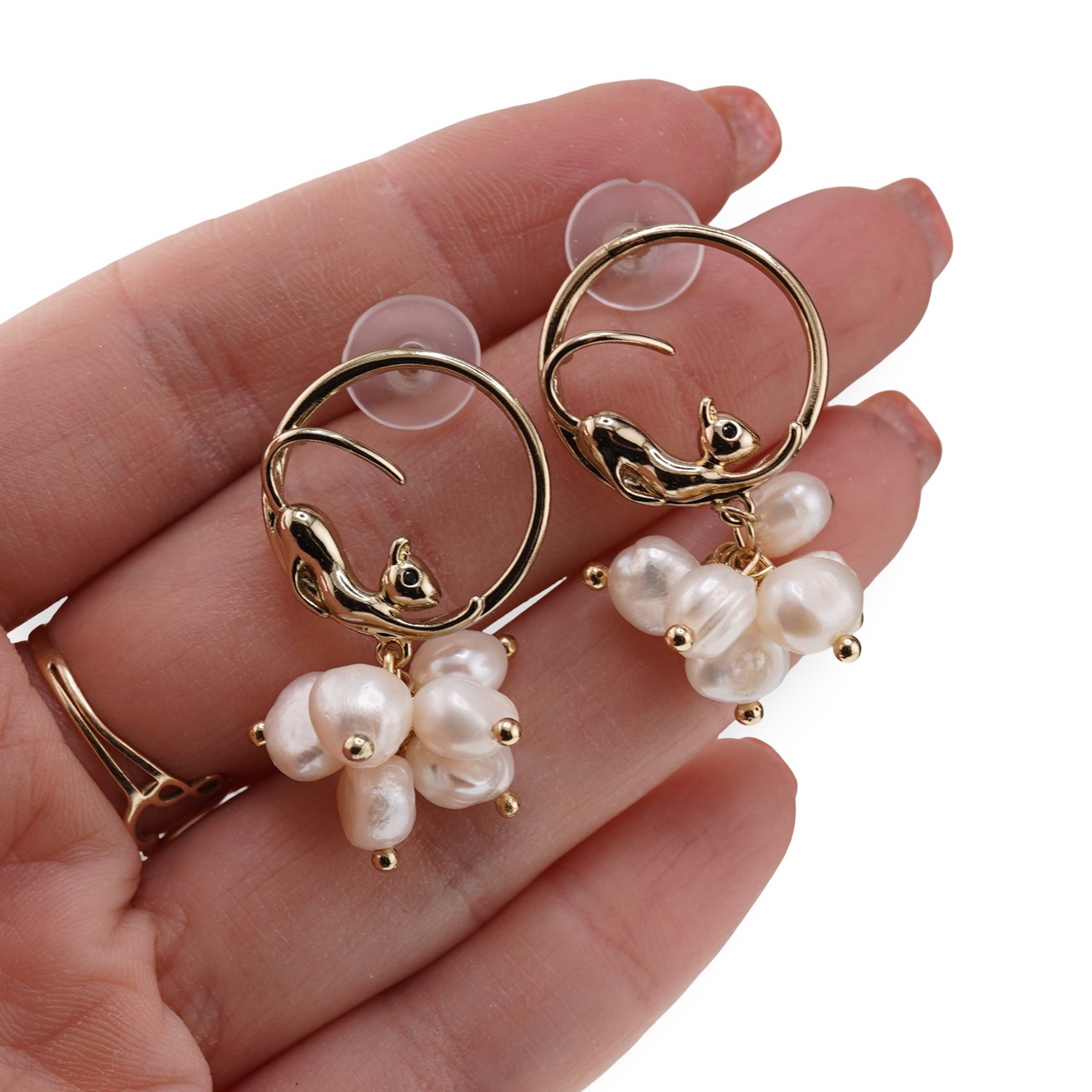 Cercei cu surub rotunzi Perle de Cultura model pisici, auriu - 35mm