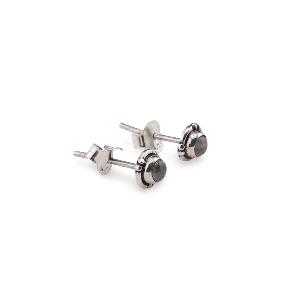 Cercei cu surub si montura rotunda gravata din argint 925, Piatra lunii - 5mm