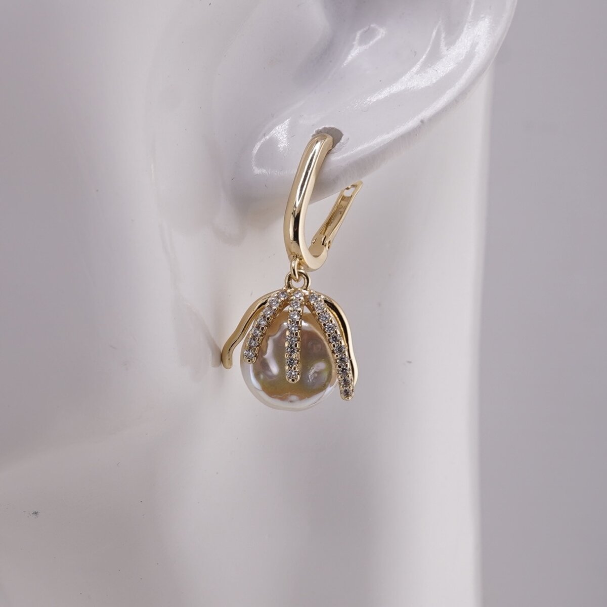 Cercei Cupru placat cu Aur galben 14k, model ciorchine cu perla