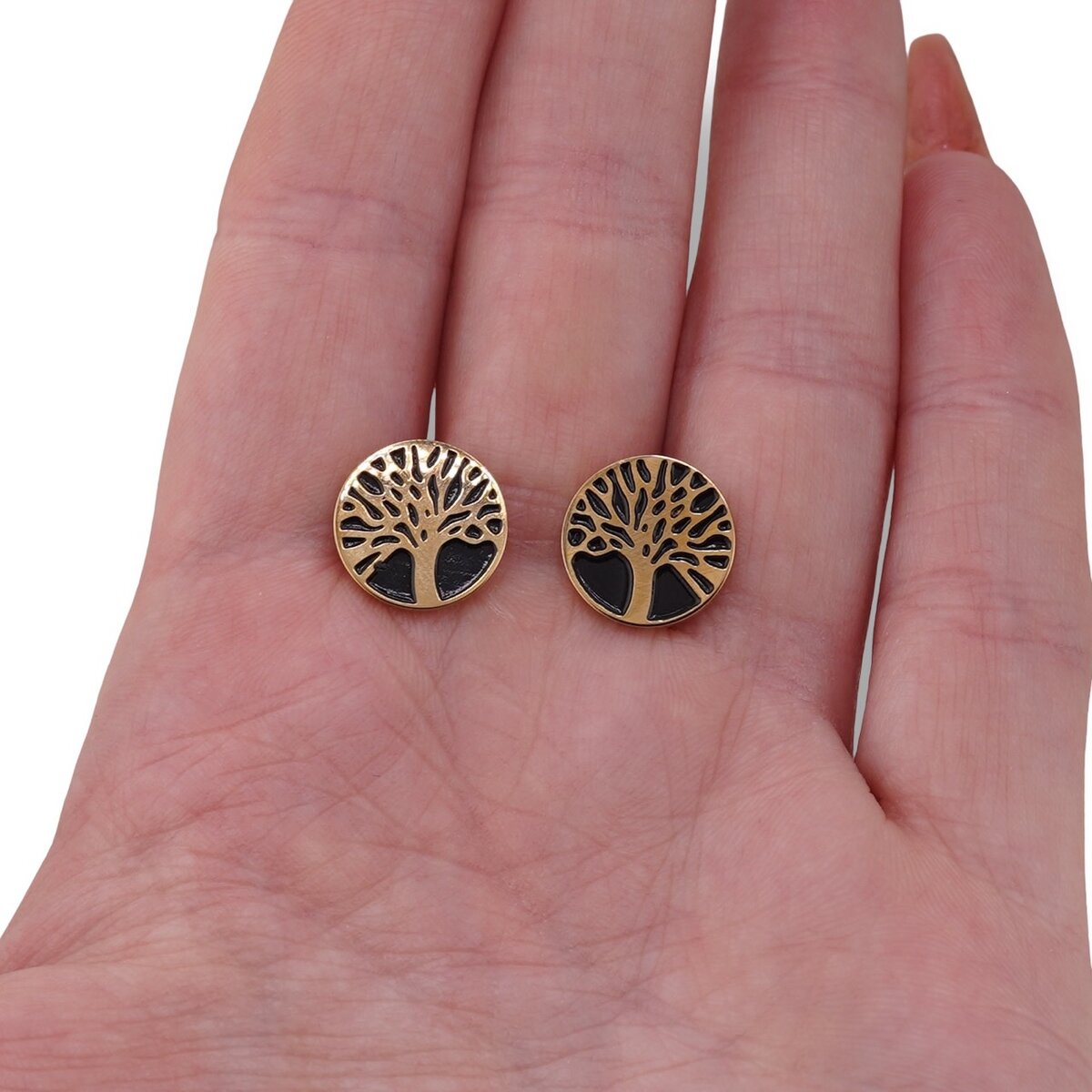 Dacă îți dorești o bijuterie în ton auriu, care să îmbine esteticul cu simbolistica, acești cercei din cupru placat cu aur galben 14k, cu model pomul vieții negru, pot fi alegerea potrivită pentru a-ți susține stilul și pentru a-ți crea propriul spațiu de echilibru energetic.