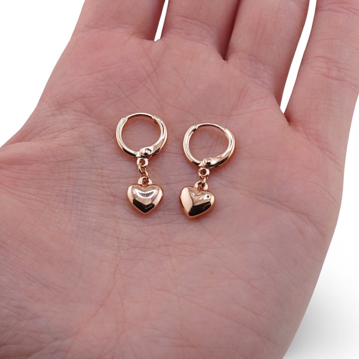 Cercei Cupru placat cu Aur rose 14k, cu inimioare mici