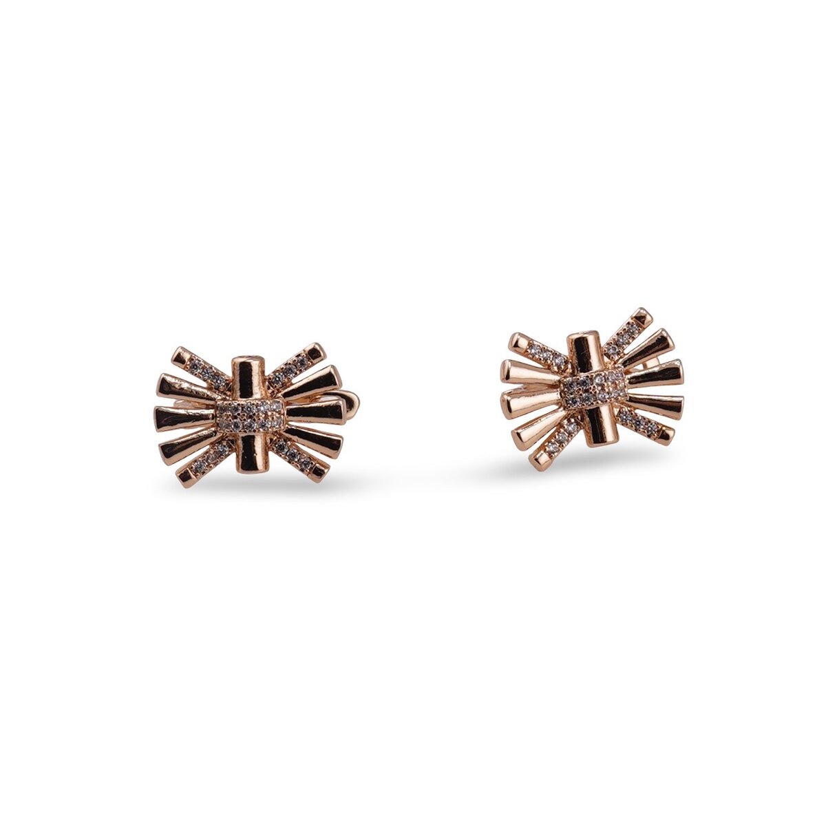 Cercei Cupru placat cu Aur rose 14k, model fundiță cu zirconii