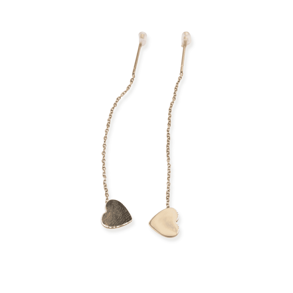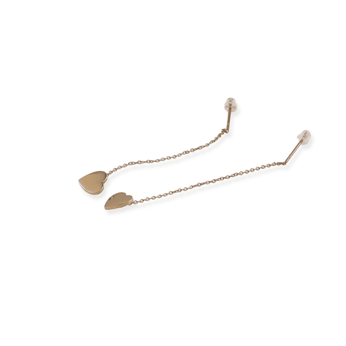 Cercei din cupru placat cu aur galben 18k, atarnatori cu inima
