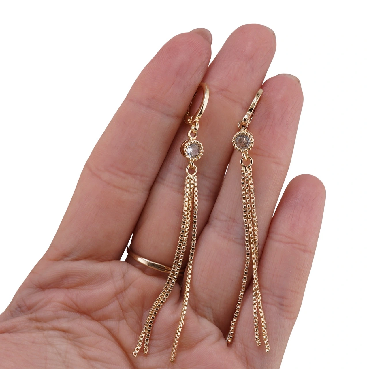 Cercei din cupru placat cu aur galben 18k, model ciucure din lant