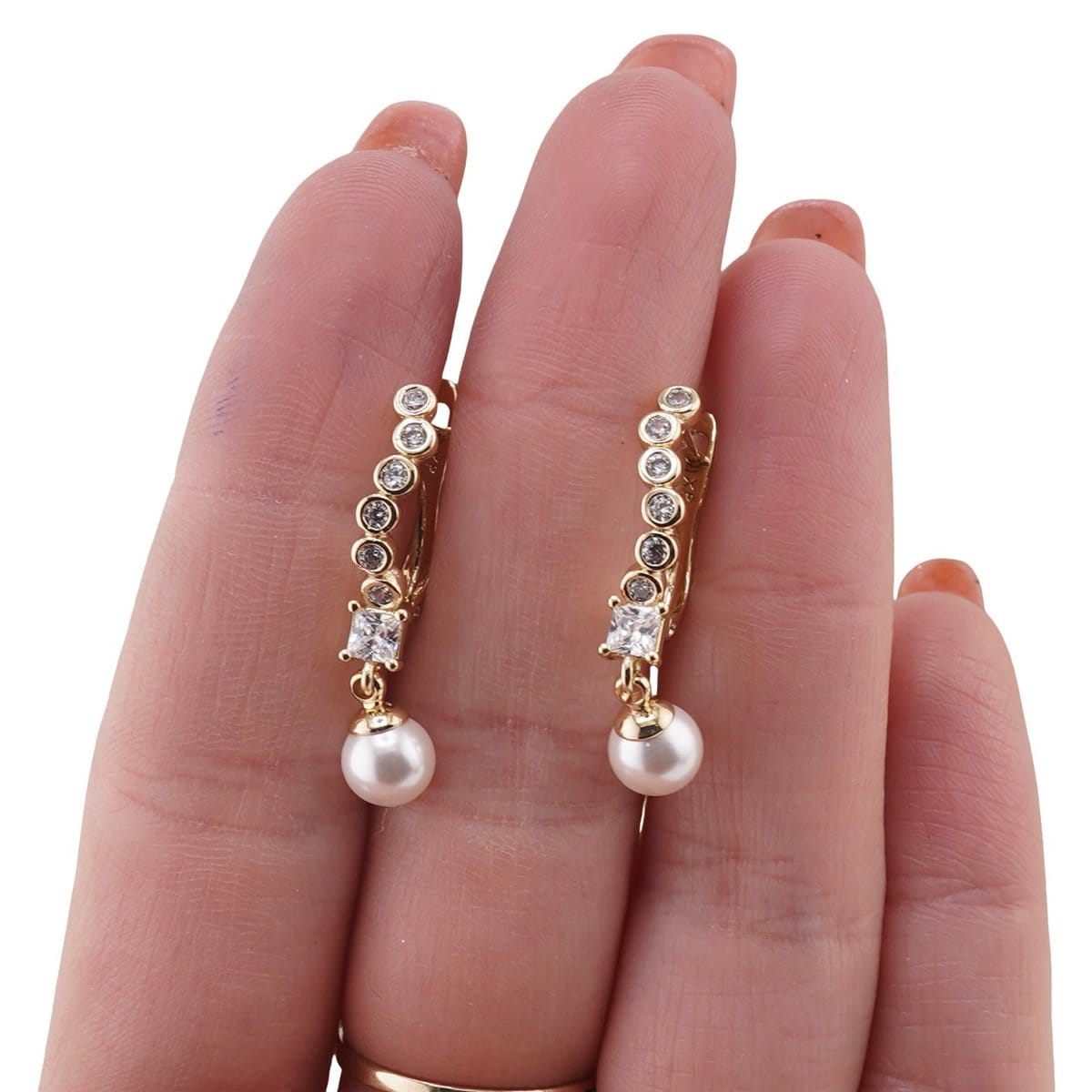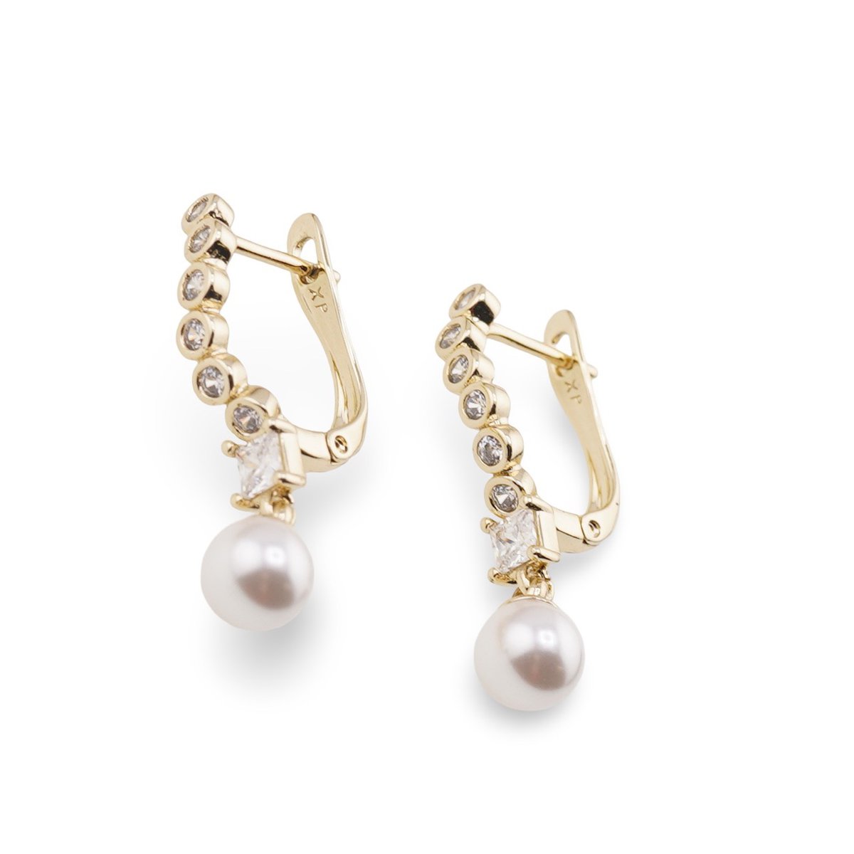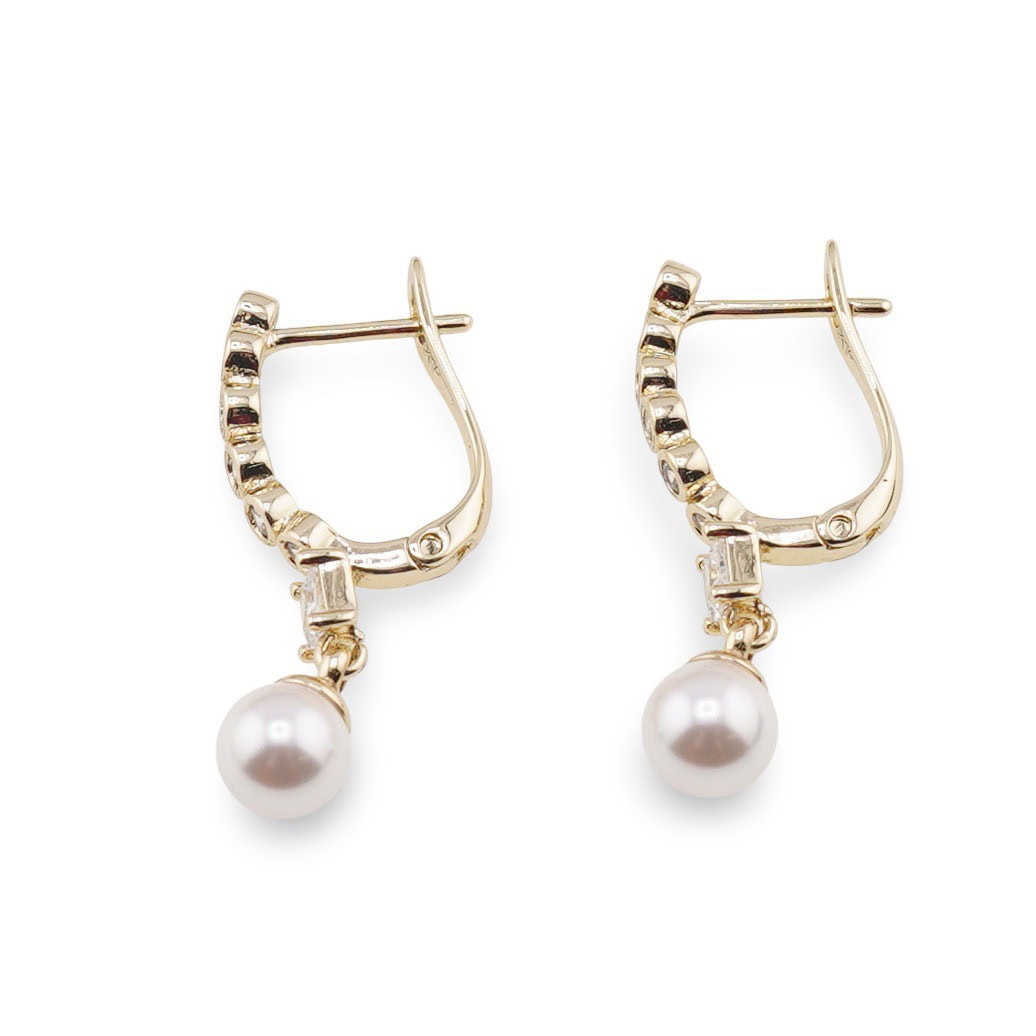 Zirconiul alb este așezat astfel încât să surprindă lumina, oferind o strălucire blândă, iar perla amplasată la bază echilibrează designul cu o notă clasică. Împreună, formează un contrast plăcut între luciul rece al pietrei și tonul cald al aurului, ceea ce face ca acești cercei să fie potriviți pentru rochii elegante, dar și pentru ținute simple, de zi cu zi.