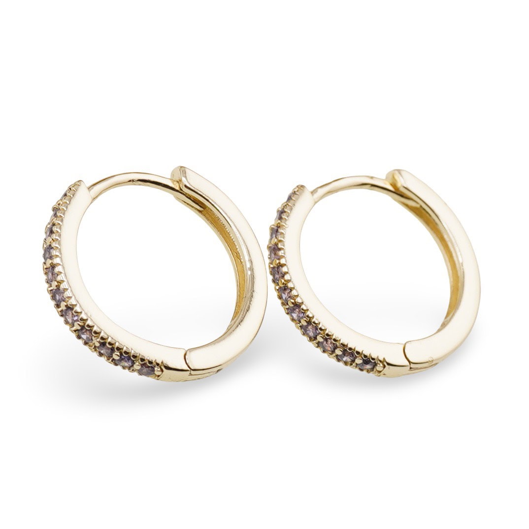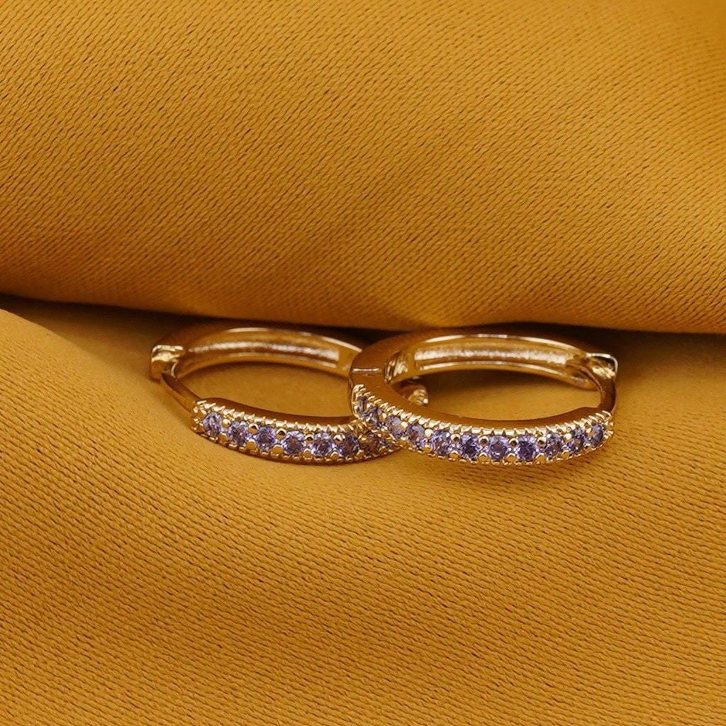 Cercei din cupru placat cu aur galben 18k, model rotund cu zirconii mov