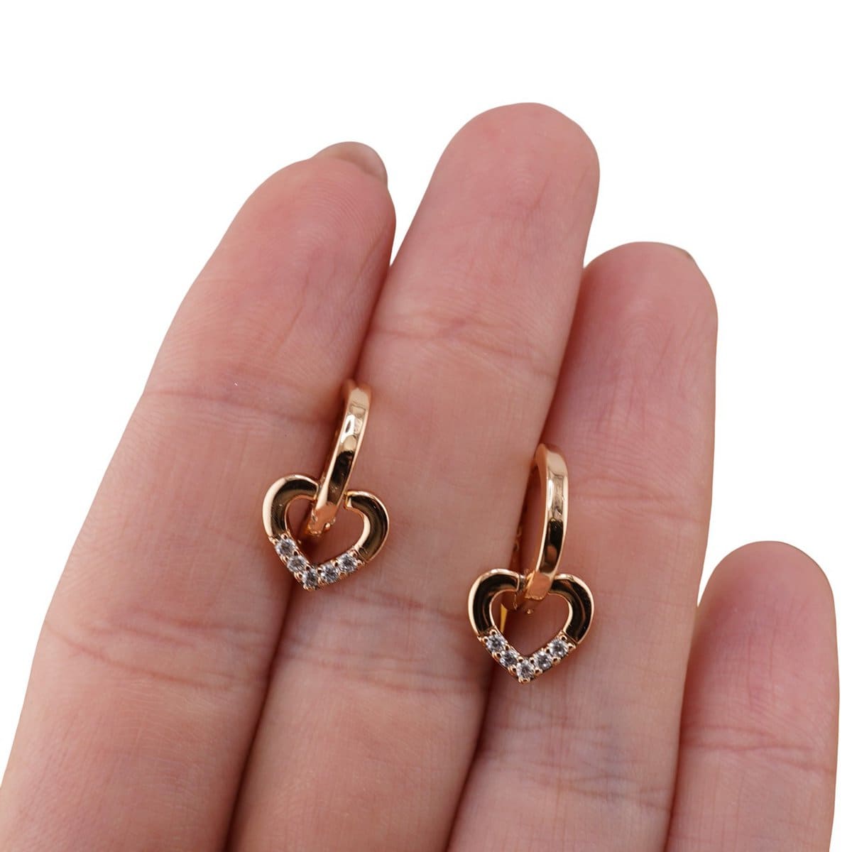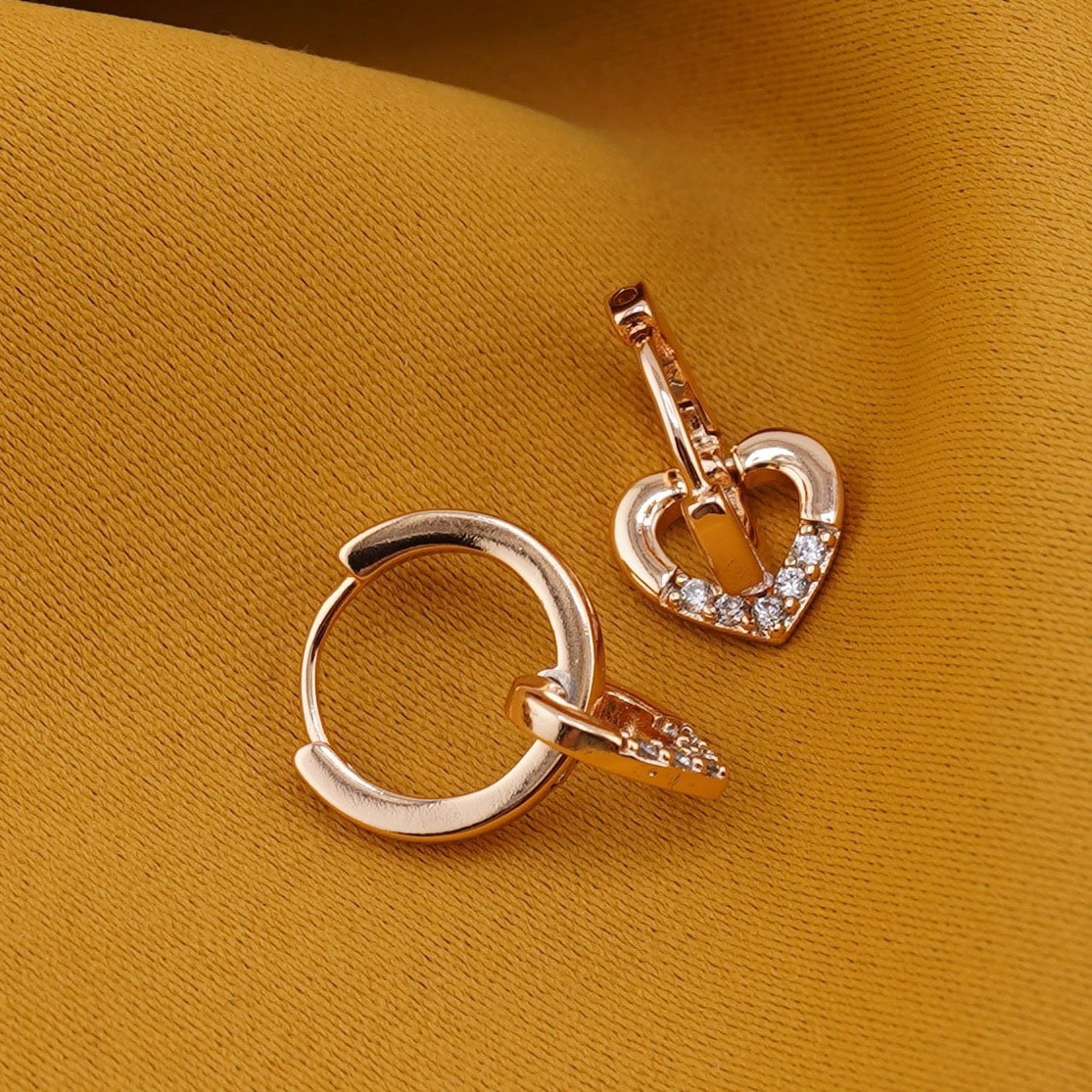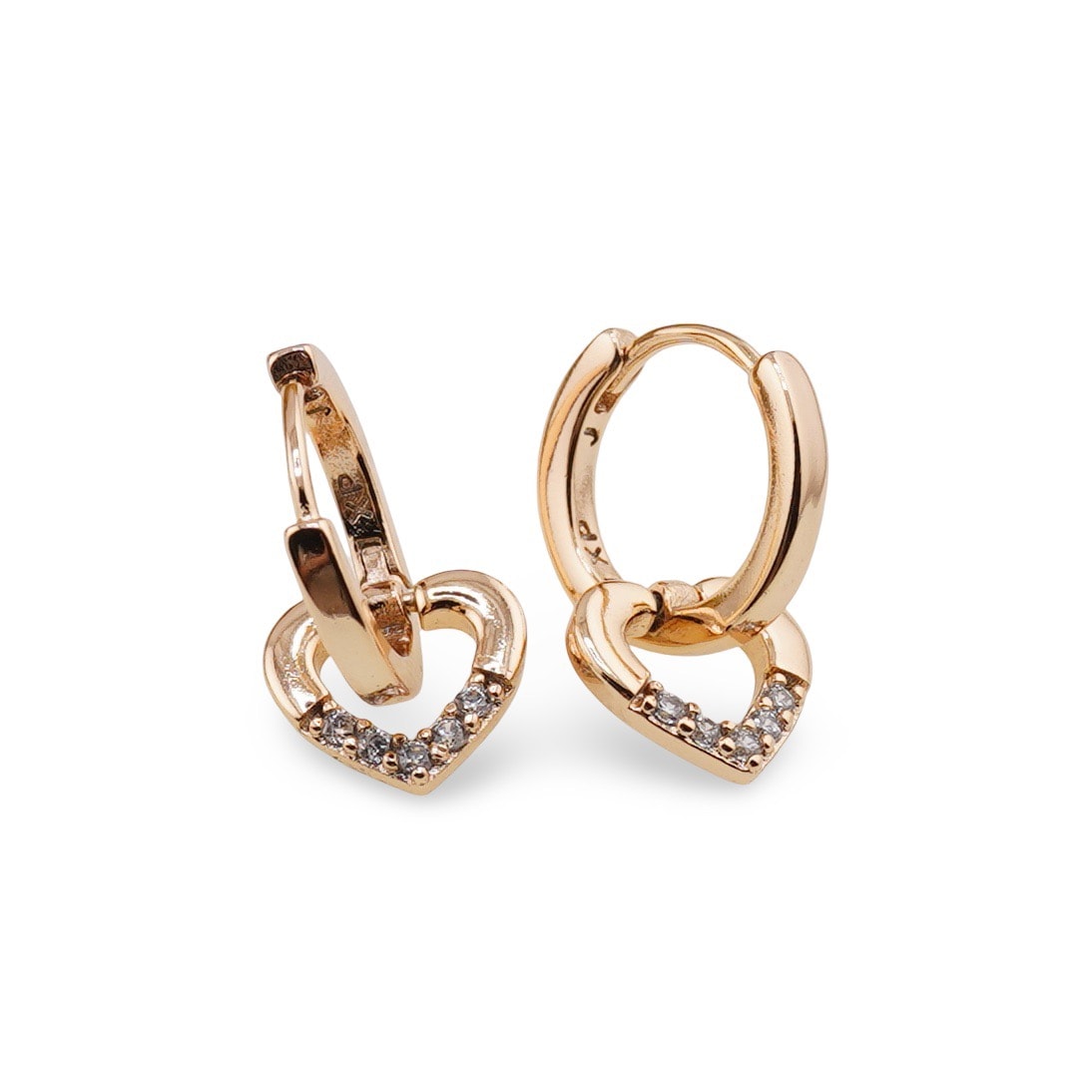 Cercei din cupru placat cu aur roz 18k, model cerc cu inimă și zirconii