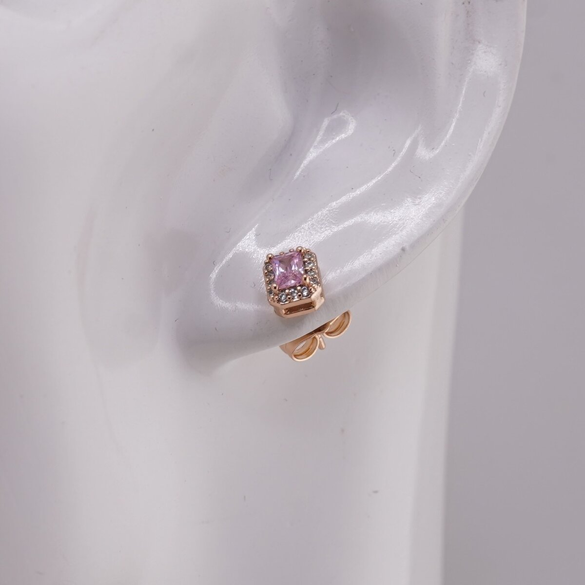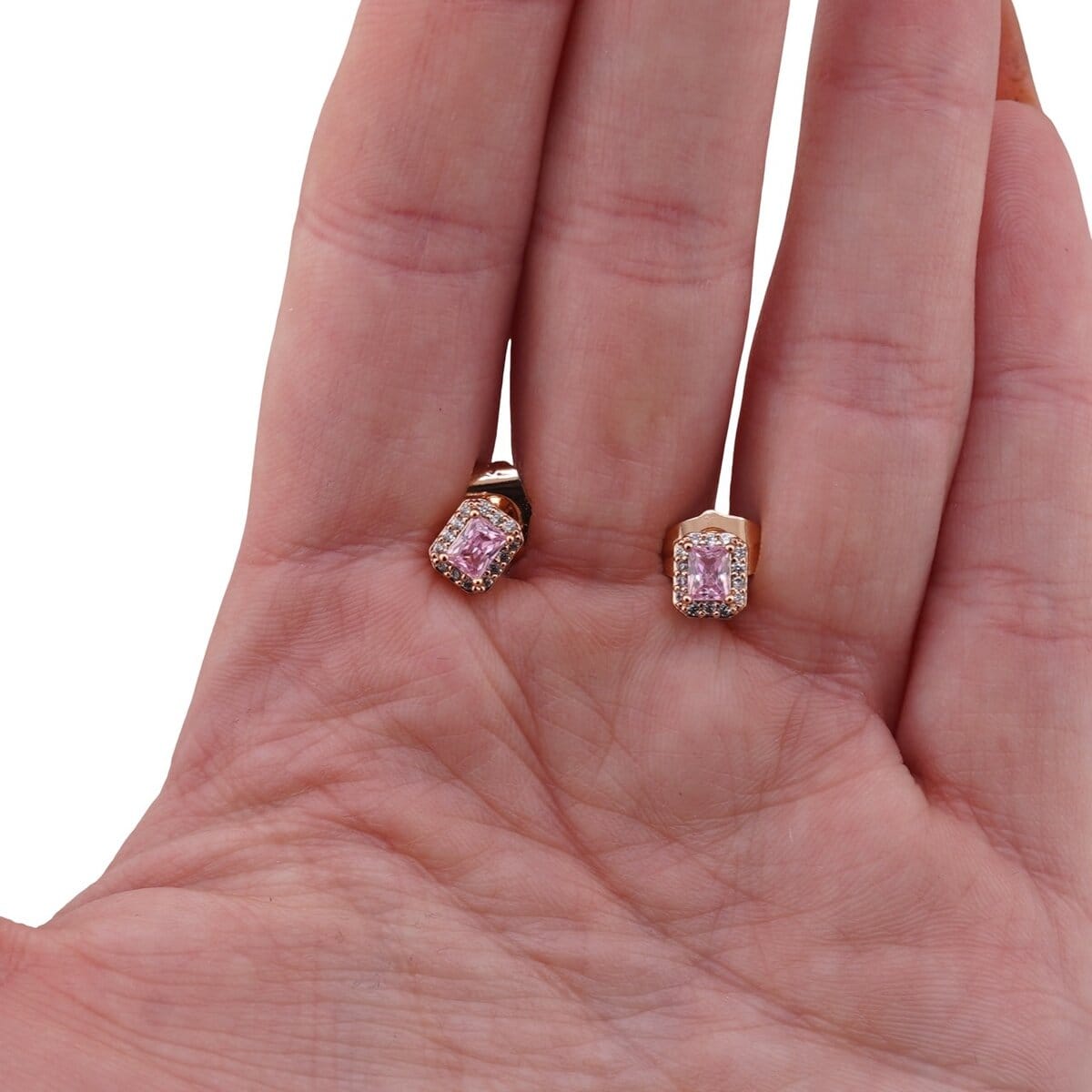 Cercei surub Cupru placat cu Aur rose 14k, cu zirconiu dreptunghiular roz