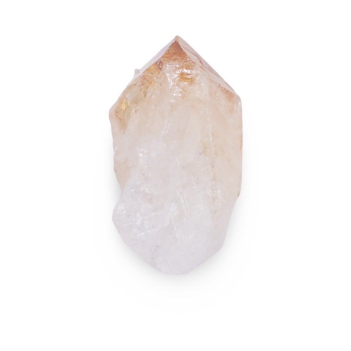 Vârf de citrin natural, cristal brut șlefuit la un capăt. Ideal pentru colecții, decor sau utilizare în practici energetice.