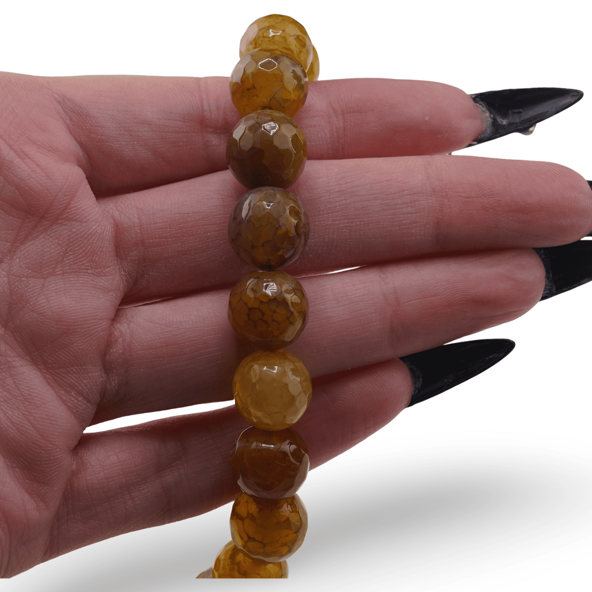 Colierul din Agat Crabfire cu sfere fațetate de 12 mm este creat pentru tine dacă îți dorești un accesoriu elegant, dar și un sprijin discret pentru echilibru interior. Nuanțele de galben ale cristalelor naturale, colorate pentru un efect vizual plăcut, aduc o energie caldă, luminoasă, care se potrivește ușor atât ținutelor de zi, cât și celor de seară.