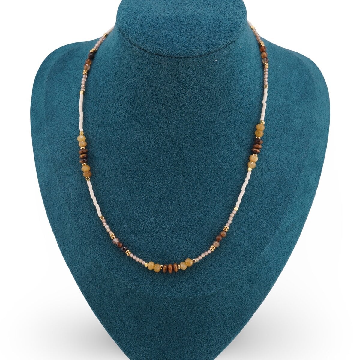Poartă acest colier atunci când ai nevoie de liniște, curaj, concentrare sau un plus de energie. Lasă nuanțele calde și vibrația blândă a cristalelor să îți amintească, de fiecare dată când îl atingi, că ai în tine resursele de care ai nevoie pentru a rămâne centrat, motivat și conectat la ceea ce îți dorești cu adevărat.