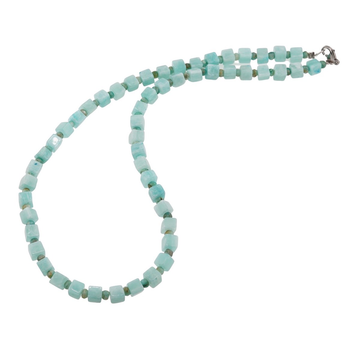 Colier amazonit cub 5-6mm si discuri fatetate 4mm