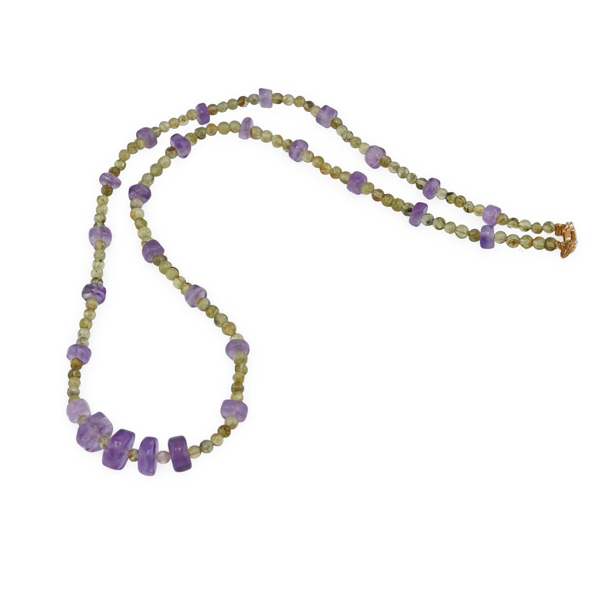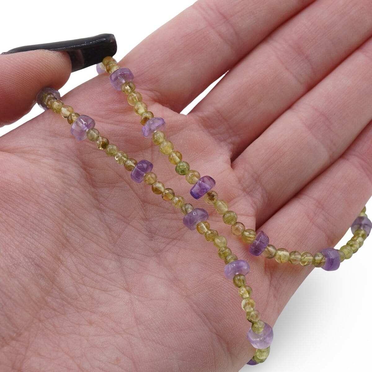 Colier Ametist discuri 5–8mm și Peridot sfere 3mm